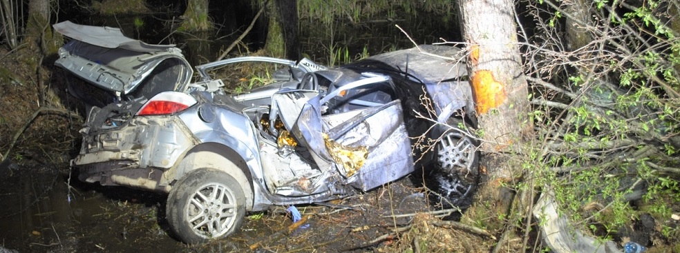 - 18-letni kierowca zginął na miejscu. Podróżujący z nim dwaj inni nastolatkowie – w wieku 17 i 18 lat, zostali ciężko ranni. Przewieziono ich śmigłowcem Lotniczego Pogotowia Ratunkowego do szpitala w Suwałkach. Aby wydobyć jedną z tych osób, trzeba było używać narzędzi hydraulicznych – ciąć samochód – opowiada dyżurny.