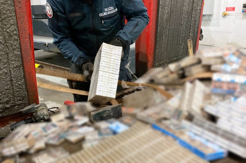 Funkcjonariusze podlaskiej i kujawsko-pomorskiej KAS skontrolowali w pobliżu polsko-litewskiej granicy w Budzisku ciężarówkę z lawetą. Zestaw został prześwietlony skanerem RTG i szczegółowo sprawdzony. W specjalnie przygotowanej i zaspawanej skrytce w lawecie funkcjonariusze znaleźli blisko 20 tys. paczek białoruskich papierosów o wartości ok. 280 tys. zł.