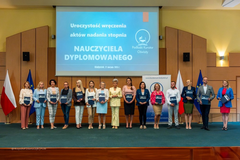 Z 212 pracowników podlaskiej oÅ›wiaty, którzy uzyskali najwyższy stopieÅ„ awansu nauczycielskiego, w uroczystoÅ›ci w BiaÅ‚ymstoku wzięło udziaÅ‚ 140 osób – nauczycielki i nauczyciele z przedszkoli, szkóÅ‚ podstawowych i ponadpodstawowych, oÅ›rodków szkolno-wychowawczych i poradni psychologiczno-pedagogicznych.