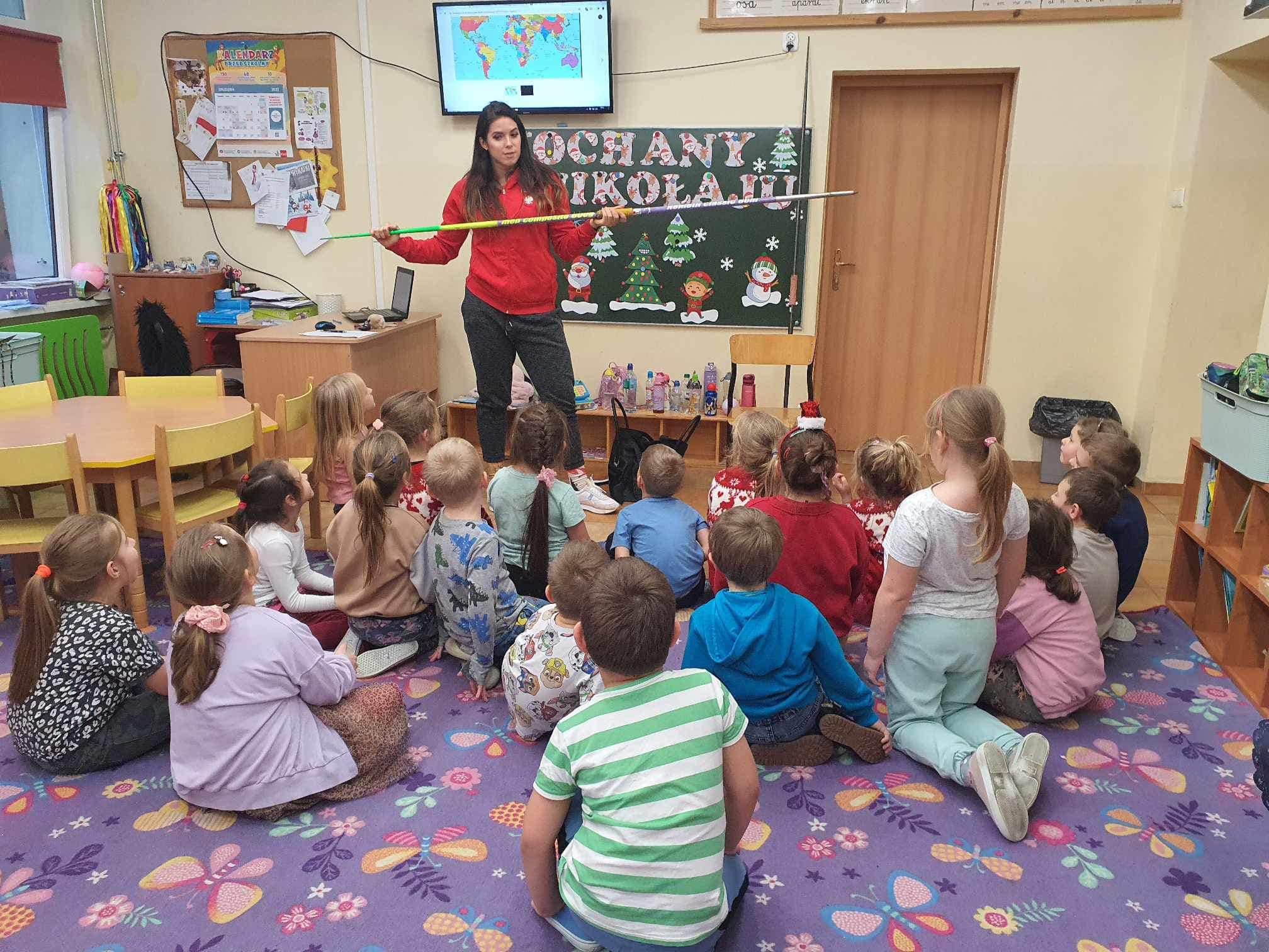 Olimpijka podzieliła się z dziećmi pasją do sportu, opowiedziała o rzucie oszczepem i poprowadziła małą olimpiadę sportową.