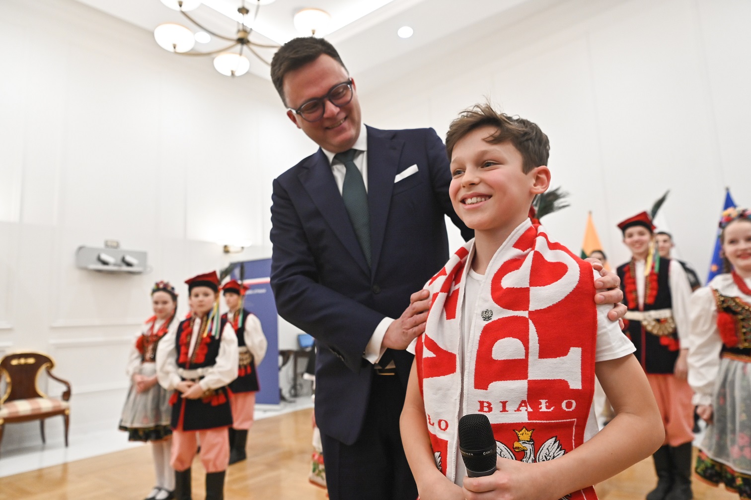 W poniedziaÅ‚ek w Ambasadzie Polski w Wilnie odbyÅ‚o siÄ™ też spotkanie marszaÅ‚ka z przedstawicielami spoÅ‚ecznoÅ›ci polskiej, które uÅ›wietniÅ‚ wystÄ™p zespoÅ‚u dzieciÄ™cego „Sto UÅ›miechów” z Liceum im. Adama Mickiewicza w Wilnie