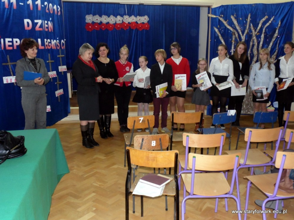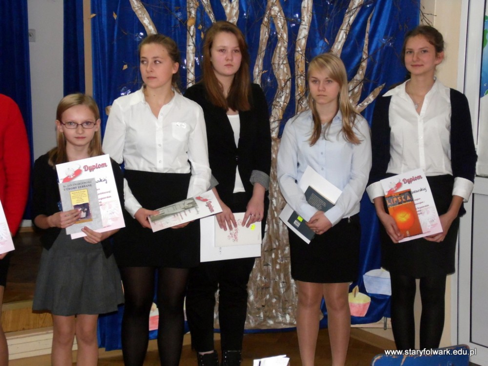 W kategorii klas IV – VI szkoły podstawowej pierwsze miejsce zajęła Natalia Statkiewicz za recytację wiersza „List Krysi". Drugie miejsce – ex aequo: Julia Zakrzewska („Oblicza Ojczyzny") i Hubert Ostrowski ( Inwokacja). Trzecie miejsce, również ex aequo zajęły Angelica Kaleta za recytację wiersza "Ojczyzna" i Emilia Kowalewska, za wiersz „Ojczyzna nasza".W kategorii gimnazjum pierwsze miejsce przypadło Urszuli Sidłowskiej („Moja Ojczyzna”), drugie – Barbarze Aneszko („Hymn Banity”) i Małgorzacie Grygo („Dla młodych”). Trzecie miejsce zajęła Joanna Tomaszewska („Kochasz Ty dom…”). Laureaci otrzymali nagrody książkowe.