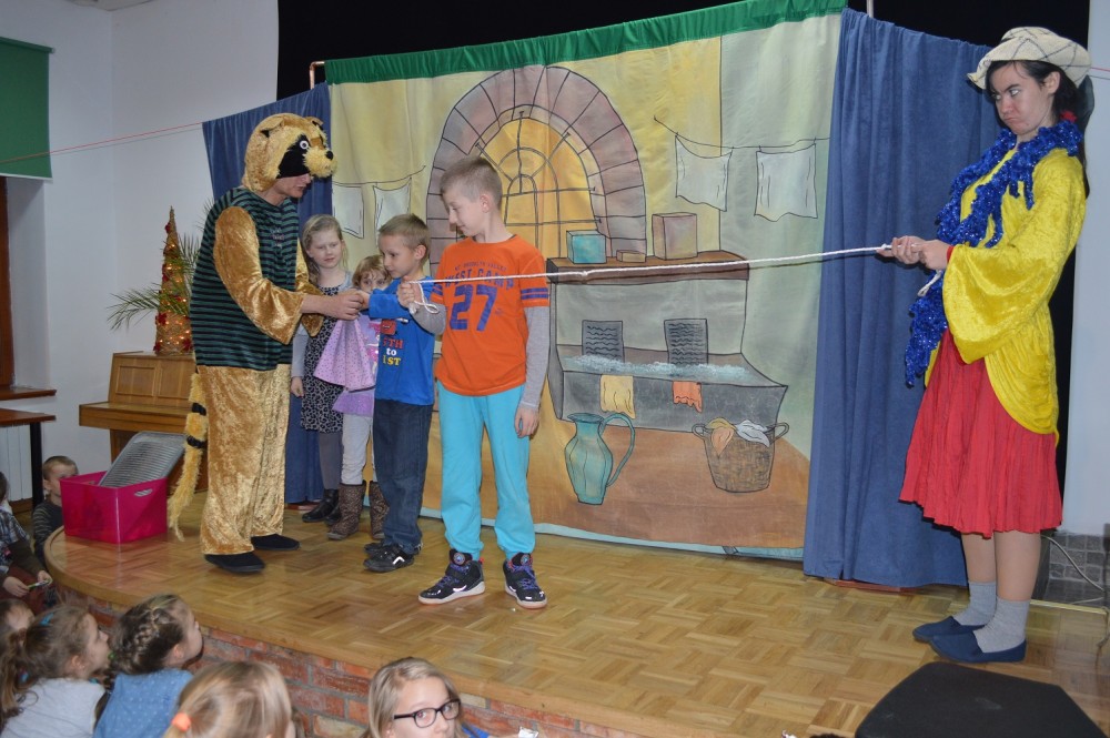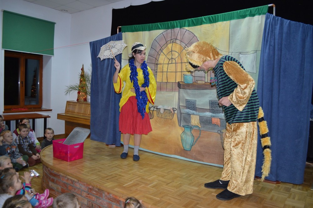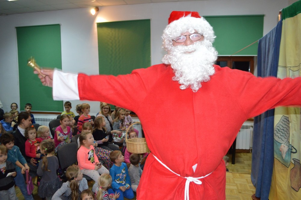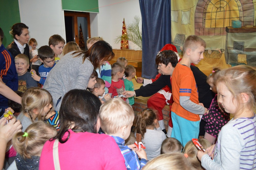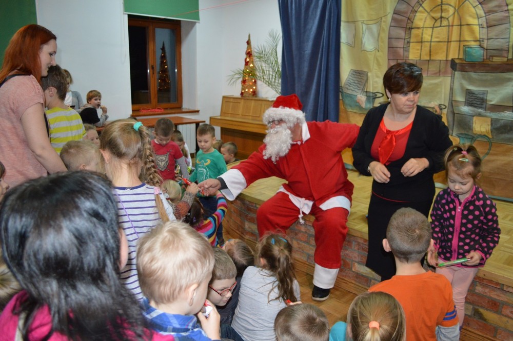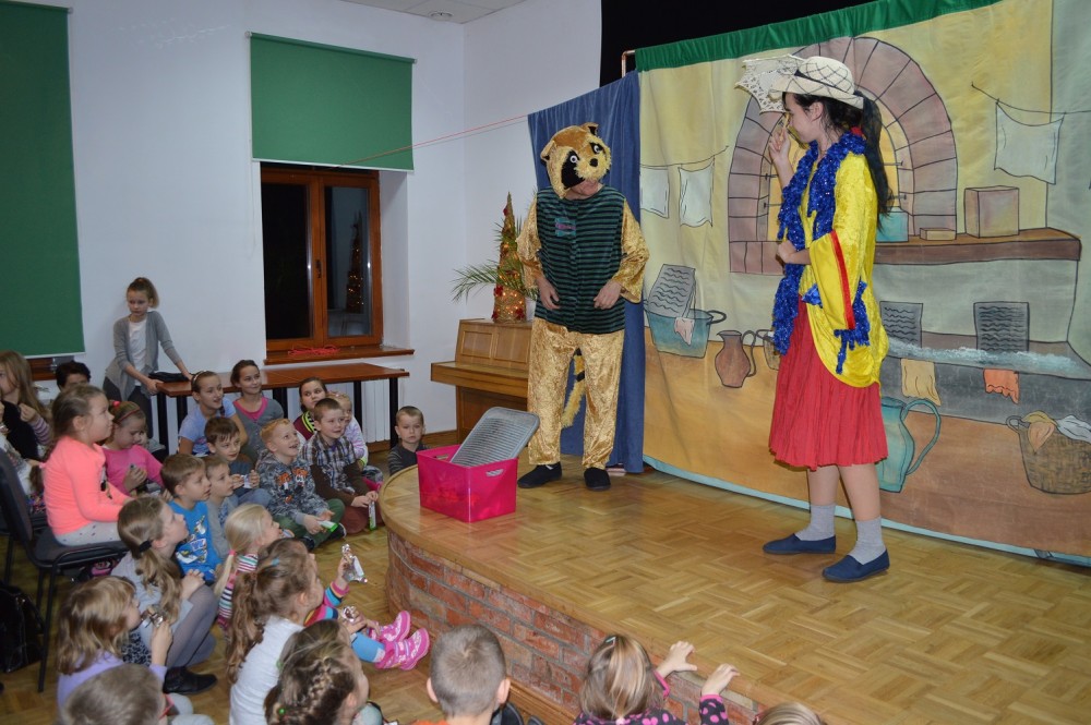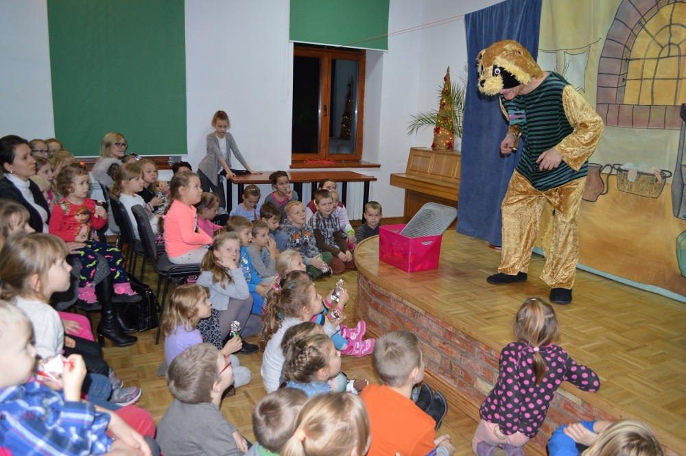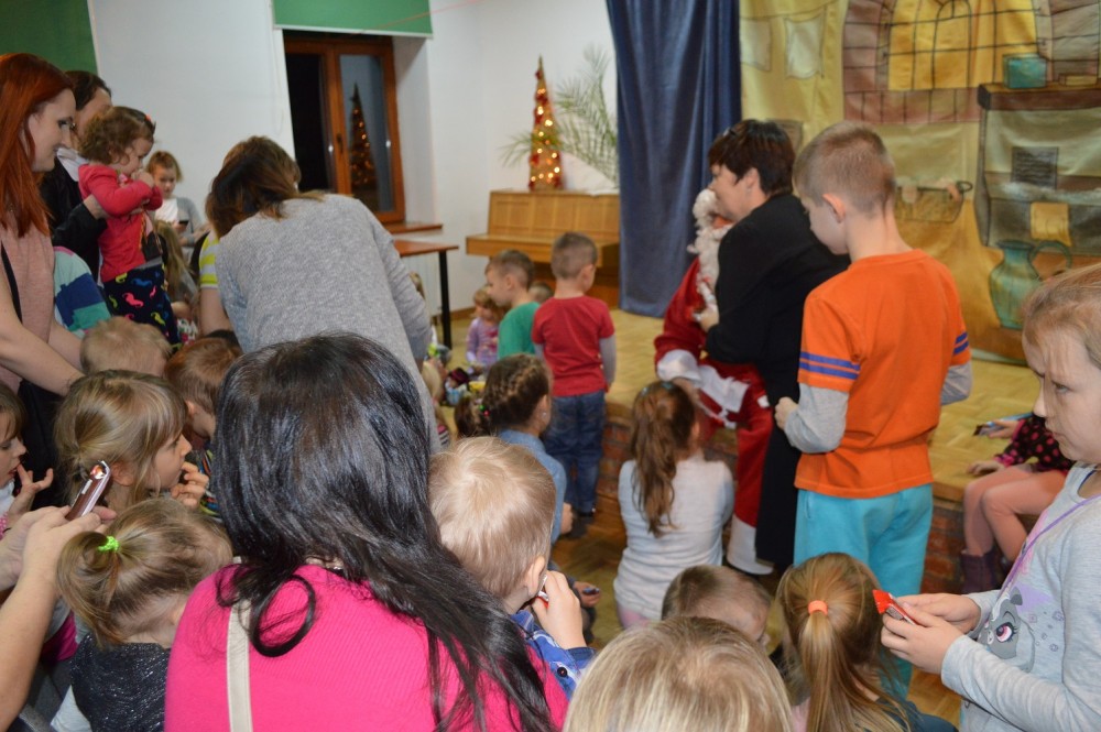 Przed przedstawieniem do GOK-u zawitaÅ‚ również ÅšwiÄ™ty MikoÅ‚aj. PrzedÅ›wiÄ…teczne spektakle dla dzieci w Raczkowskim GOK-u to już tradycja, dlatego widzów przybyÅ‚o tak dużo, że salka widowiskowa pÄ™kaÅ‚a w szwach. Najwidoczniej wszystkie dzieci byÅ‚y bardzo grzeczne, bo MikoÅ‚aj nikogo nie pominÄ…Å‚ i każdy maÅ‚y uczestnik otrzymaÅ‚ sÅ‚odki upominek.