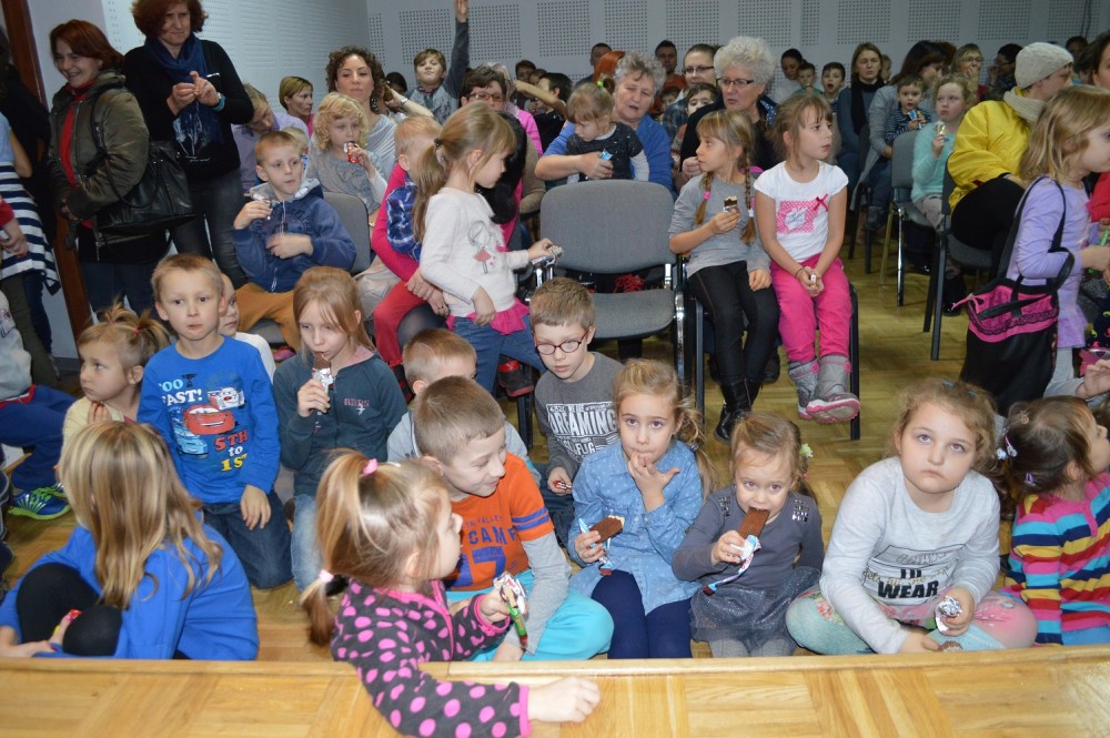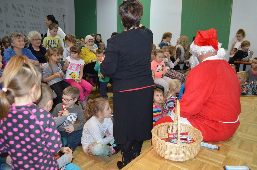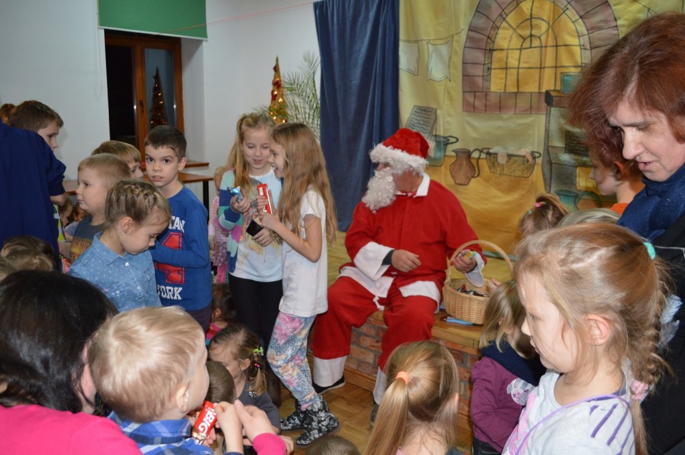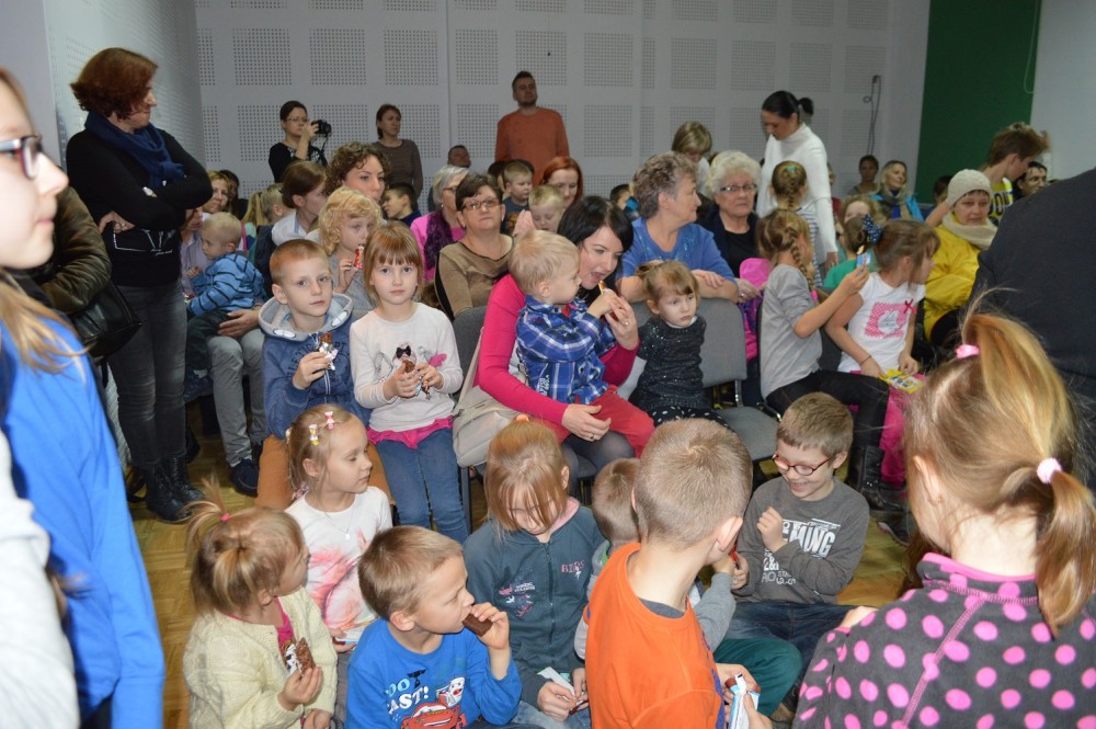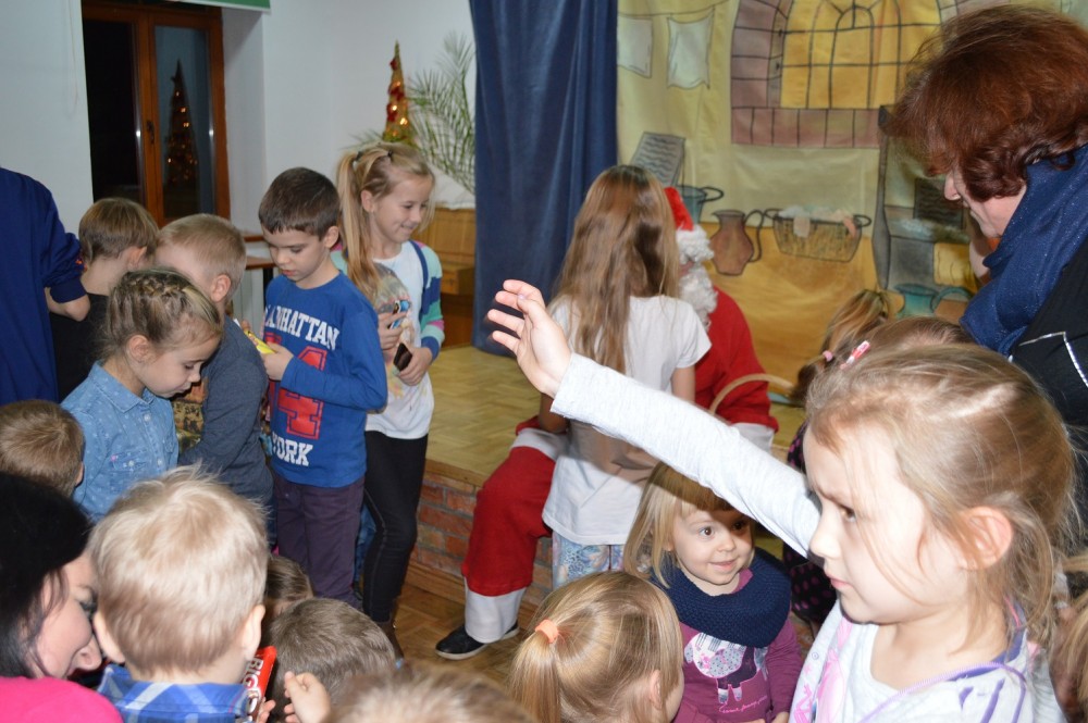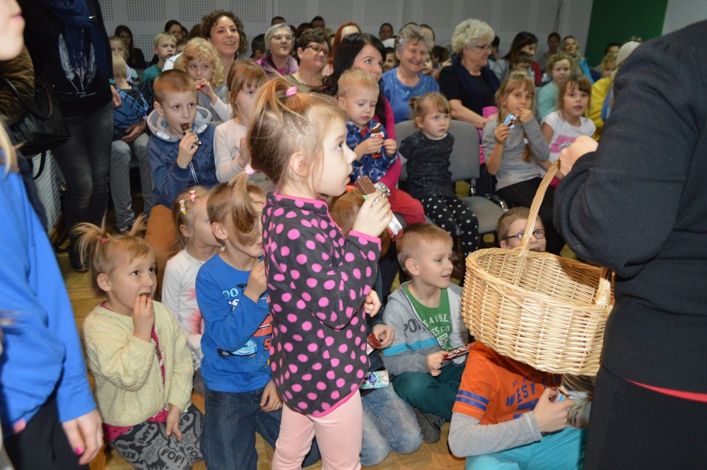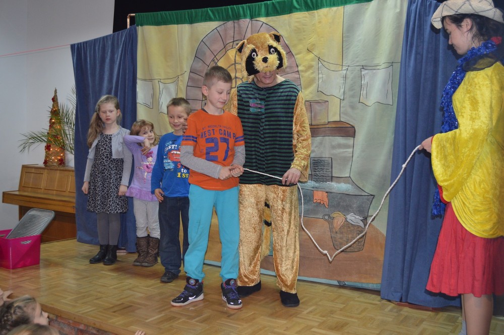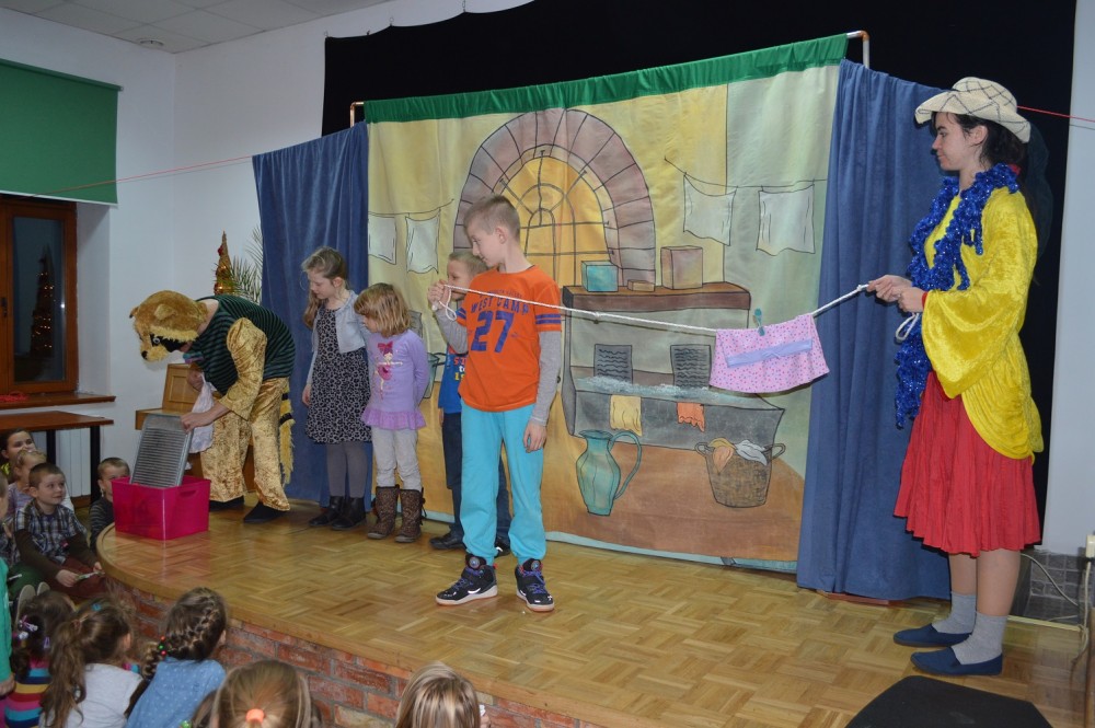 Przed przedstawieniem do GOK-u zawitaÅ‚ również ÅšwiÄ™ty MikoÅ‚aj. PrzedÅ›wiÄ…teczne spektakle dla dzieci w Raczkowskim GOK-u to już tradycja, dlatego widzów przybyÅ‚o tak dużo, że salka widowiskowa pÄ™kaÅ‚a w szwach. Najwidoczniej wszystkie dzieci byÅ‚y bardzo grzeczne, bo MikoÅ‚aj nikogo nie pominÄ…Å‚ i każdy maÅ‚y uczestnik otrzymaÅ‚ sÅ‚odki upominek.