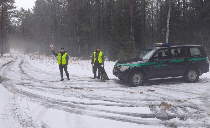 W ramach wsparcia kolegów z Podlaskiego Oddziału SG, funkcjonariusze z Dubeninek 8 lutego tuż po godzinie 8 rano w gminie Wiżajny zatrzymali do kontroli drogowej mercedesa.