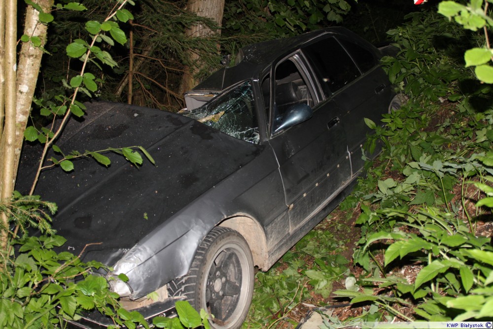 Wczoraj okoÅ‚o godziny 22.30 dyżurny Komendy Powiatowej Policji w Sejnach otrzymaÅ‚ informacjÄ™ o pojeździe, który zjechaÅ‚ do przydrożnego rowu na drodze relacji Sejny - Sztabinki. Na miejsce natychmiast pojechali mundurowi. Tam wstÄ™pnie ustalili, że 26-latek kierujÄ…c bmw na Å‚uku drogi najprawdopodobniej jechaÅ‚ zbyt szybko. StraciÅ‚ panowanie nad pojazdem, zjechaÅ‚ do rowu i uderzyÅ‚ w drzewo. Jak siÄ™ okazaÅ‚o, kierowca byÅ‚ pod wpÅ‚ywem alkoholu. Badanie alkomatem wykazaÅ‚o w organizmie 26 – letniego mieszkaÅ„ca Sejn prawie 0,50 promila alkoholu. Policjanci zatrzymali mężczyźnie prawo jazdy. Nieodpowiedzialnym zachowaniem kierujÄ…cego zajmie siÄ™ teraz sÄ…d.