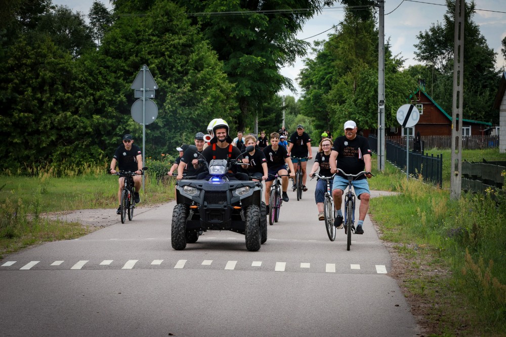 Następnie uczestnicy Rajdu wyruszyli w trasę liczącą 21 km. Każdy z nich otrzymał pamiątkową koszulkę, pakiet startowy oraz wstążkę z nazwiskiem Ofiary Obławy Augustowskiej, którą po powrocie rowerzyści zawiesili na przygotowanej wstędze pamięci.