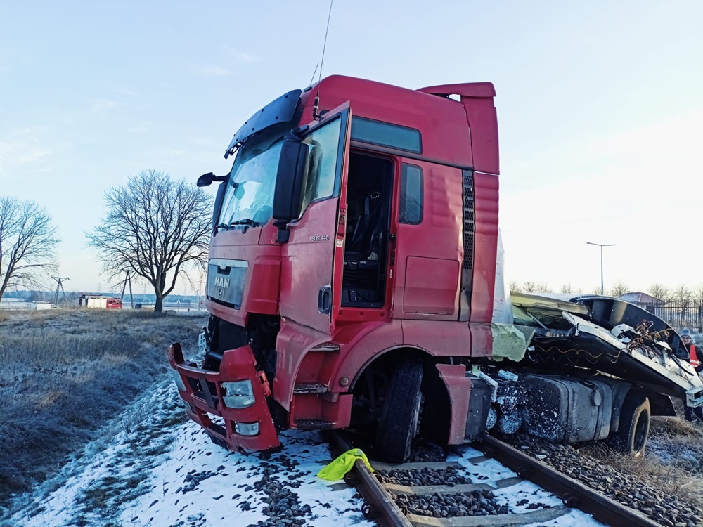 SiÅ‚a uderzenia wyrzuciÅ‚a kierowcÄ™ z kabiny ciężarówki. ZostaÅ‚ on przewieziony do szpitala.