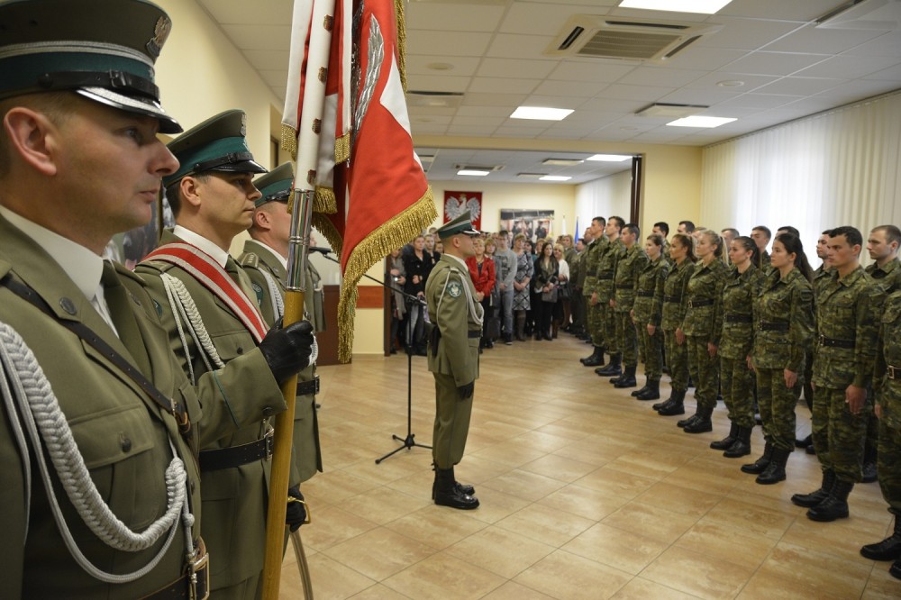Komendant Podlaskiego Oddziału Straży Granicznej ppłk SG Grzegorz Biziuk odebrał ślubowanie od nowo przyjętych funkcjonariuszy. Uroczystość odbyła się w obecności pocztu sztandarowego, kadry kierowniczej i rodzin funkcjonariuszy w komendzie oddziału w Białymstoku.