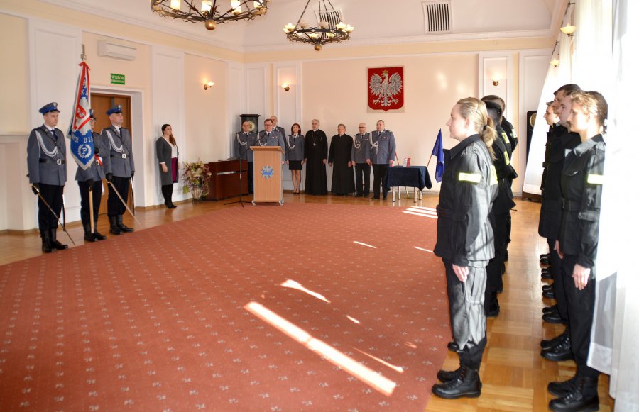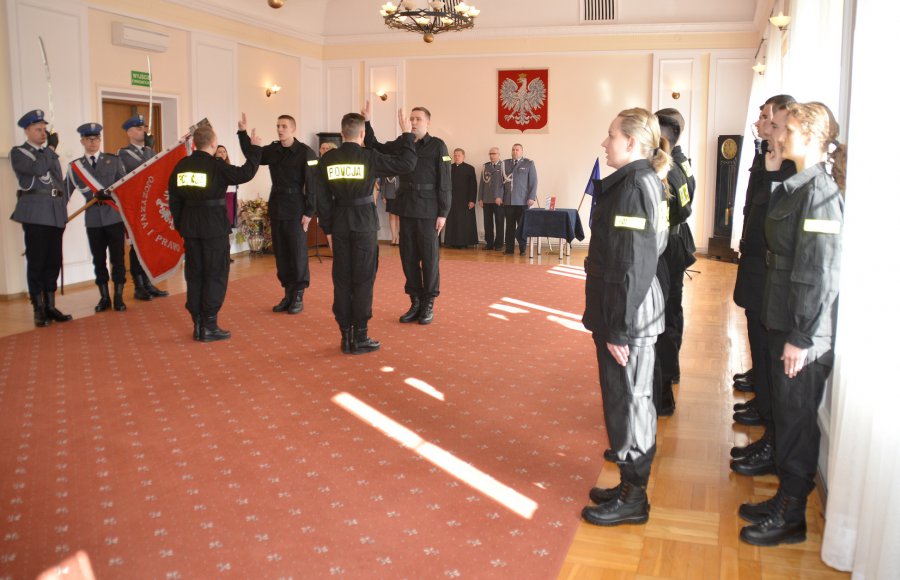 Przed Komendantem Wojewódzkim Policji w Białymstoku nadinspektorem Danielem Kołnierowiczem funkcjonariusze ślubowali m.in. „Strzec bezpieczeństwa państwa i jego obywateli nawet z narażeniem życia…”. Zanim jednak młodzi adepci podlaskiej Policji będą mogli wesprzeć w codziennej służbie swoich starszych kolegów, czeka ich rozpoczynające się już w najbliższy poniedziałek kilkumiesięczne szkolenie w Centrum Szkolenia Policji w Legionowie.