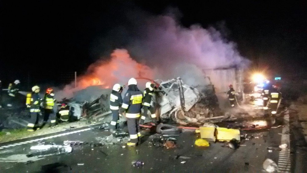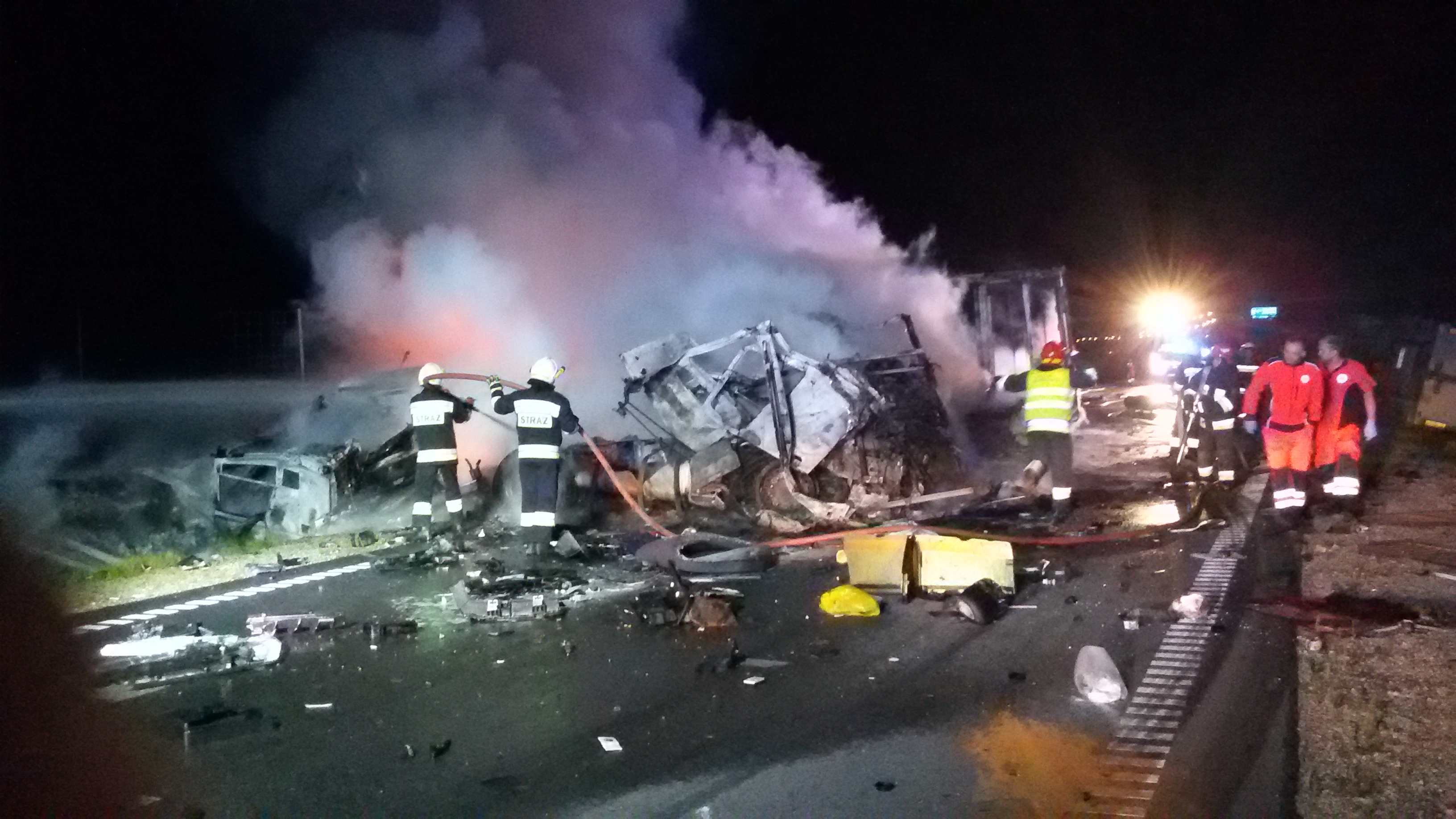 Strażacy zabezpieczyli miejsce zdarzenia i ugasili ogieÅ„. W kabinach odnaleziono ciaÅ‚a kierowców. Lekarz, który przybyÅ‚ na miejsce wypadku, stwierdziÅ‚ ich zgon.