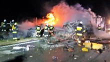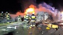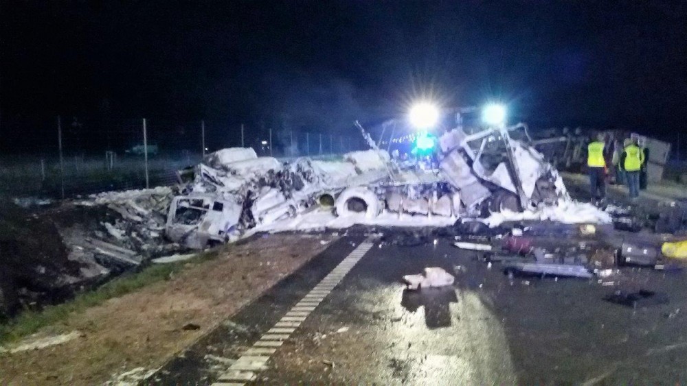 CiÄ…gniki siodÅ‚owe spÅ‚onęły doszczÄ™tnie. Dogaszanie pożaru zakoÅ„czyÅ‚o siÄ™ okoÅ‚o 3.30. Droga byÅ‚a caÅ‚kowicie zablokowana. Teraz na miejscu pracujÄ… sÅ‚użby drogowe oraz firma transportowa. UsuwajÄ… resztki pojazdów, starajÄ… siÄ™ doprowadzić drogÄ™ do przejezdnoÅ›ci.