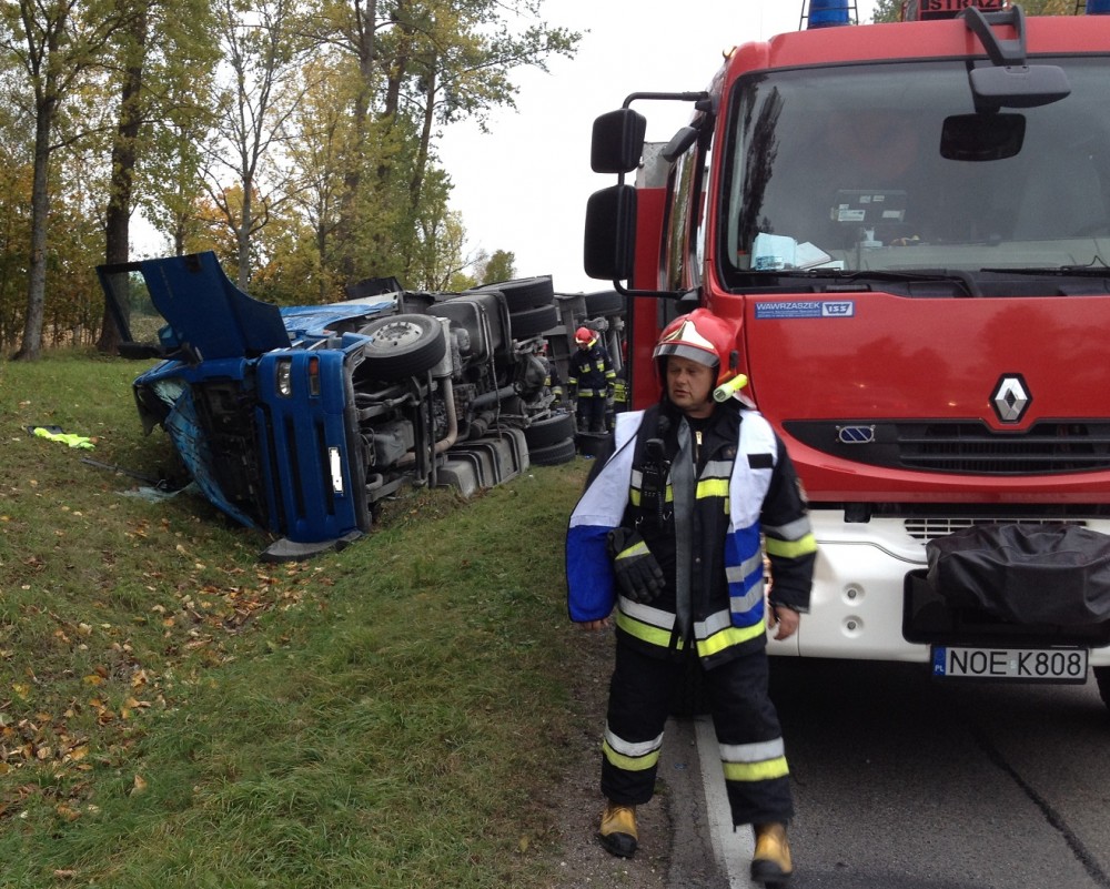 Rannego, 22-letniego Macedończyka z kabiny wydobyli strażacy. Z obrażeniami głowy i ręki został przetransportowany do szpitala w Ełku. Badanie alkomatem wykazało, że był trzeźwy. Przez kilkanaście godzin w miejscu wypadku ruch odbywał się wahadłowo. Przeładunek przewożonego towaru oraz stawianie ciężarówki na koła trwało do wczesnych godzin porannych.