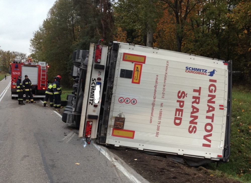 - Policjanci, ustalili, że kierujący ciężarówką obywatel Macedonii nie dostosował prędkości do warunków drogowych, na zakręcie stracił panowanie nad pojazdem, zjechał na pobocze i przewrócił się w przydrożnym rowie – informuje Justyna Sznel z Komendy Powiatowej Policji w Olecku.