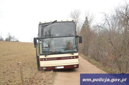 Do zdarzenia doszÅ‚o w miniony czwartek w Olecku. Jeden z oleckich przewoźników po przyjÅ›ciu do pracy zauważyÅ‚ brak na parkingu autobusu. O zdarzeniu natychmiast poinformowaÅ‚ dyżurnego oleckiej komendy. Policjanci potwierdzili zgÅ‚oszenie i rozpoczÄ™li poszukiwania pojazdu. WstÄ™pnie ustalili, że z kradzieżą autobusu może mieć zwiÄ…zek jeden z pracowników firmy. „Porwany” autobus policjanci odnaleźli w miejscowoÅ›ci Wilkasy na terenie gminy Wieliczki. ZnajdowaÅ‚ siÄ™ na poboczu drogi gruntowej i byÅ‚ uszkodzony.