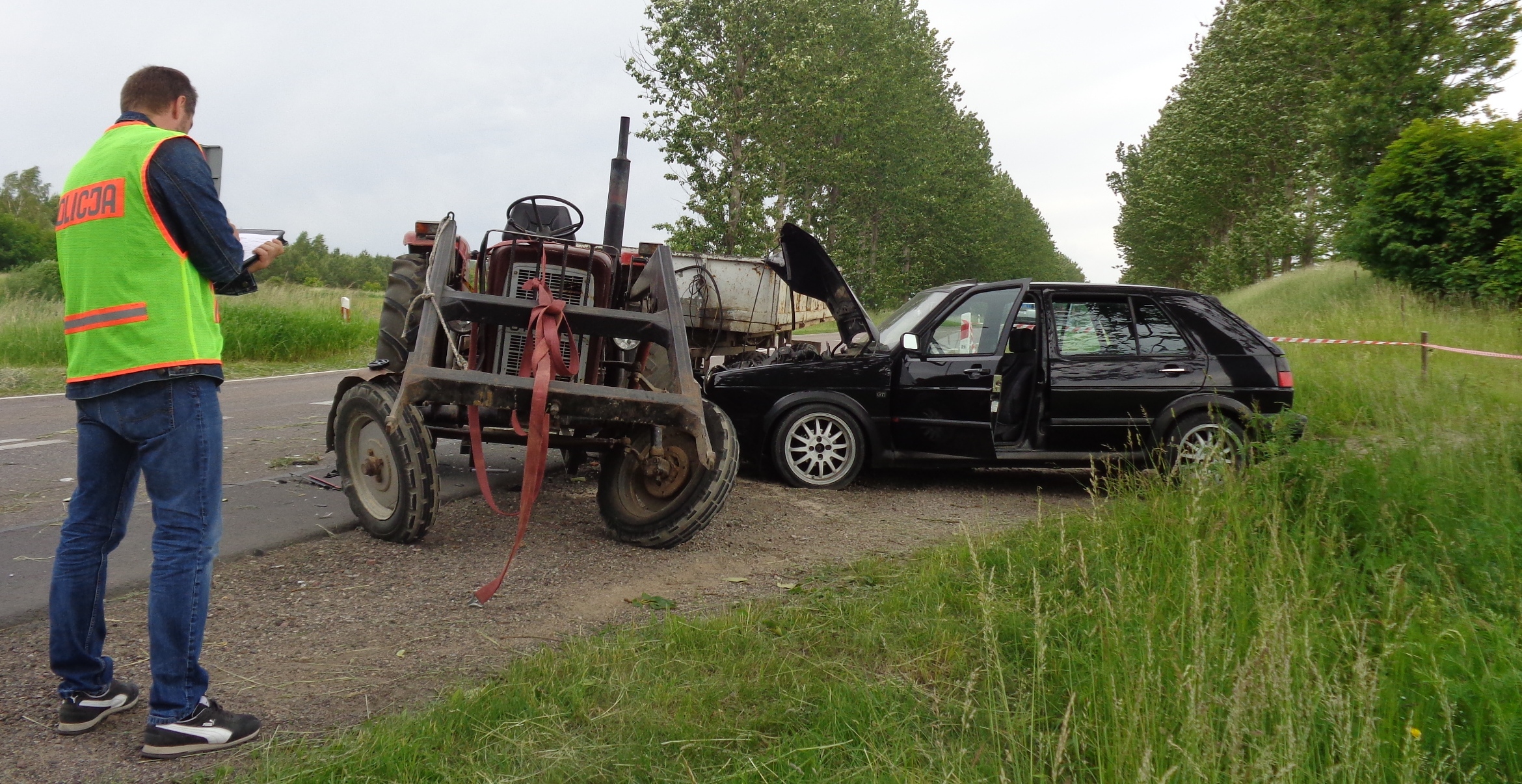 Badanie alkomatem wykazało, że zarówno kierująca volkswagenem jak i kierujący ciągnikiem byli trzeźwi.