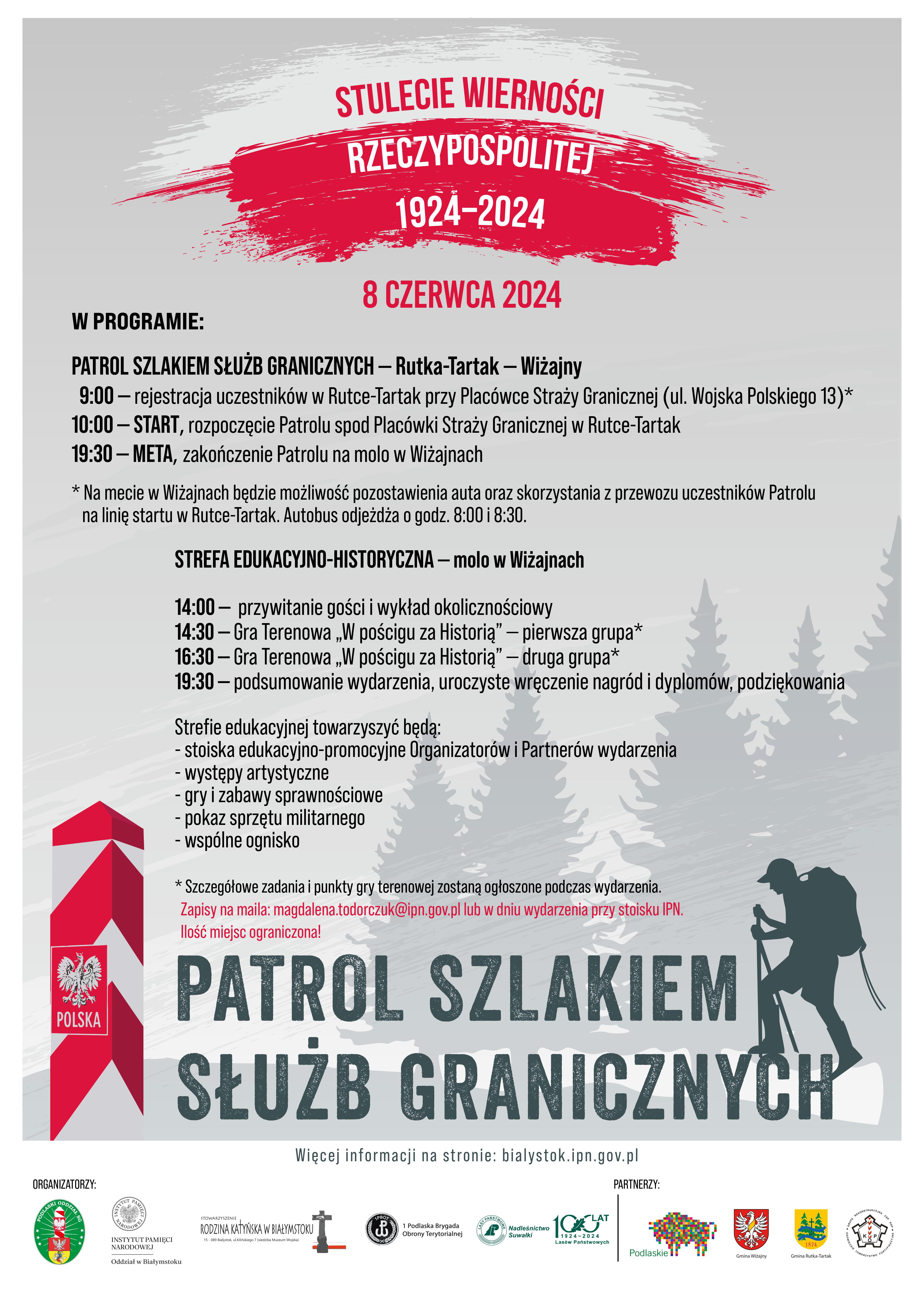 Serdecznie zapraszamy na Patrol Szlakiem Służb Granicznych „Stulecie wierności Rzeczypospolitej", organizowanym w związku z 100. rocznicą powołania Korpusu Ochrony Pogranicza!