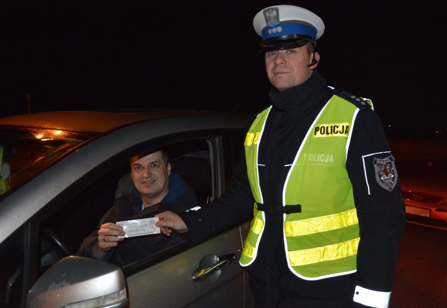W trakcie akcji policjanci, mając na celu zapobieganie przestępstwom drogowym, rozdawali uczestnikom ruchu naklejki z hasłem „Nigdy nie jeżdżę po alkoholu”.