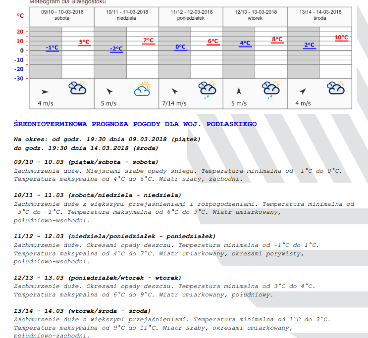 BiaÅ‚ostockie zespól IMGW-PIB opublikowaÅ‚ wÅ‚aÅ›nie Å›rednioterminowÄ… prognozÄ™, poczÄ…wszy od najbliższej soboty. O przymrozkach powinniÅ›my zapomnieć już w nocy z poniedziaÅ‚ku na wtorek. W Å›rodÄ™ zaÅ›, jeżeli termometry rzeczywiÅ›cie pokażą wiÄ™cej niż 10°C w cieniu, Å›miaÅ‚o stwierdzimy, że i na Suwalszczyźnie wiosna tuż, tuż.