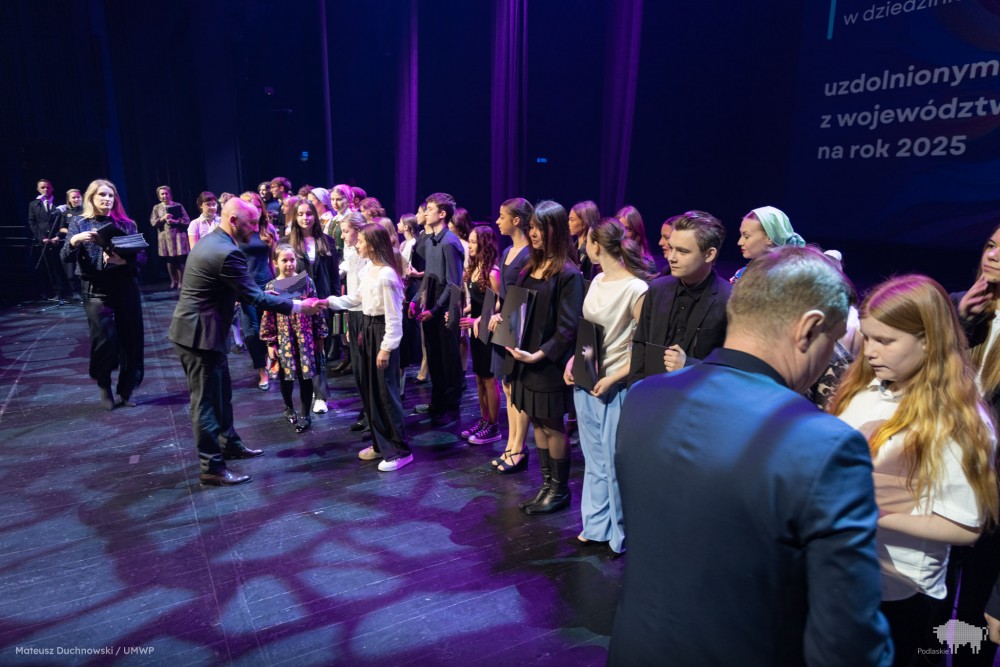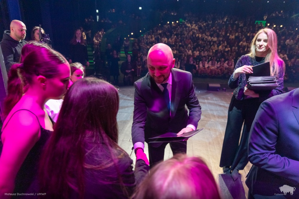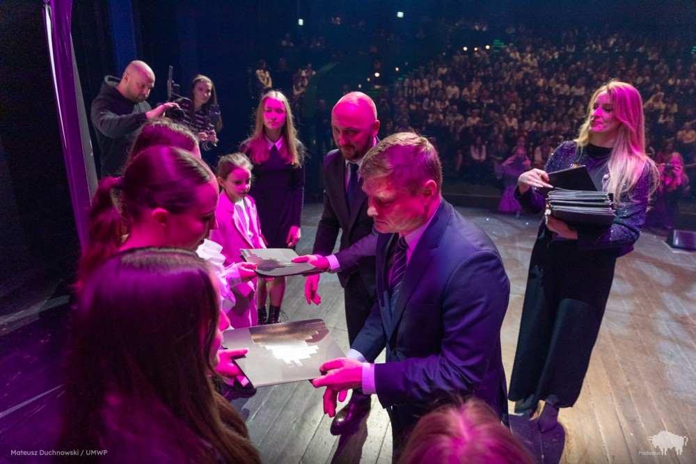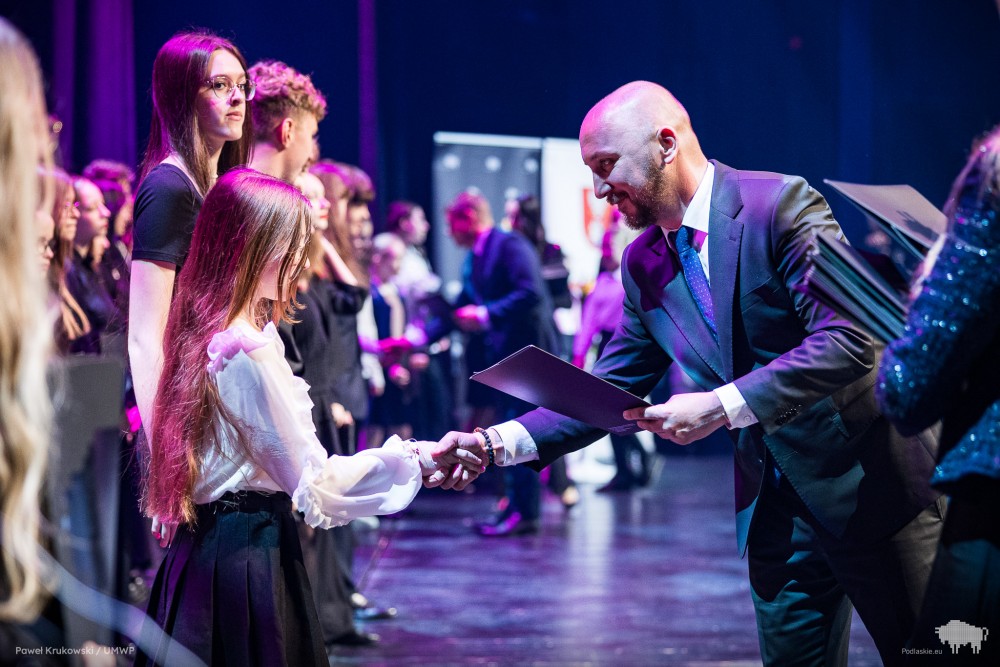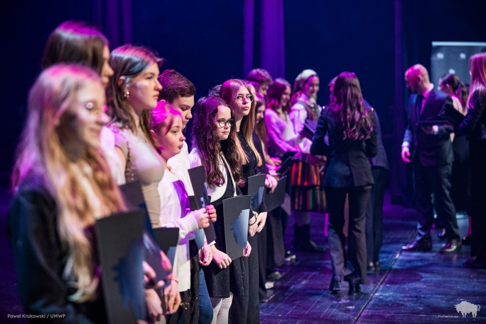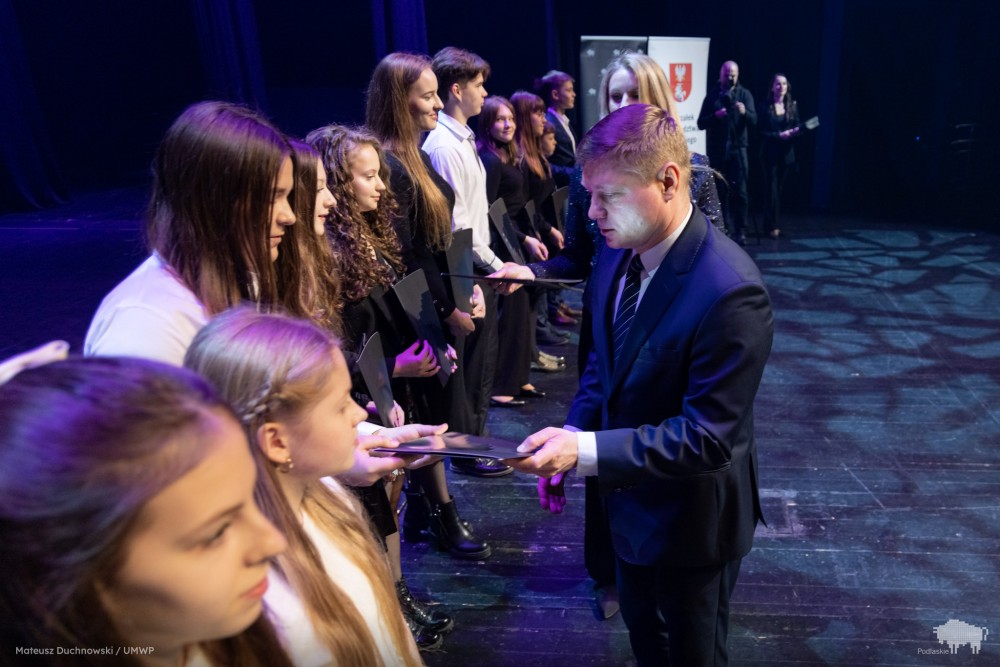Wyróżnienia stypendystom wręczyli marszałek Łukasz Prokorym oraz wicemarszałek Marek Malinowski podczas środowej, 26.03, gali w Operze i Filharmonii Podlaskiej.