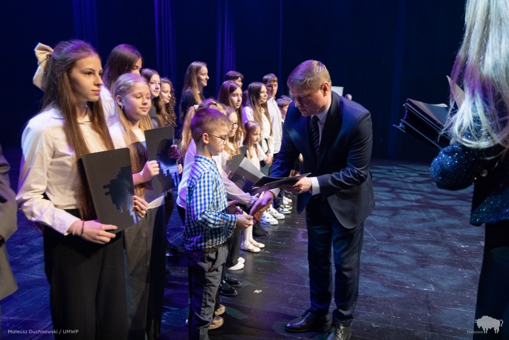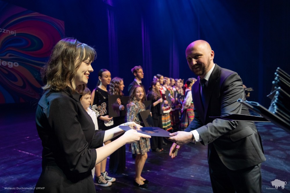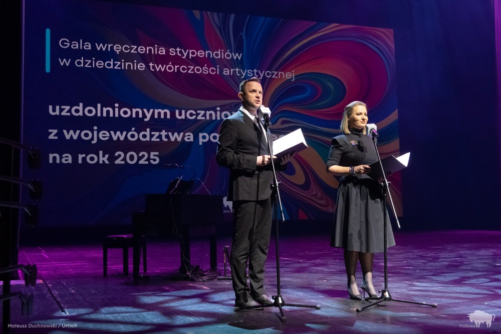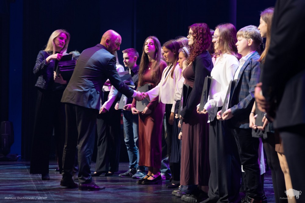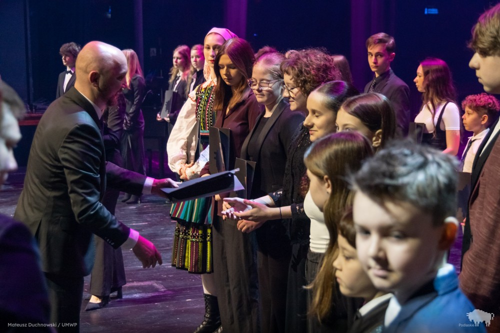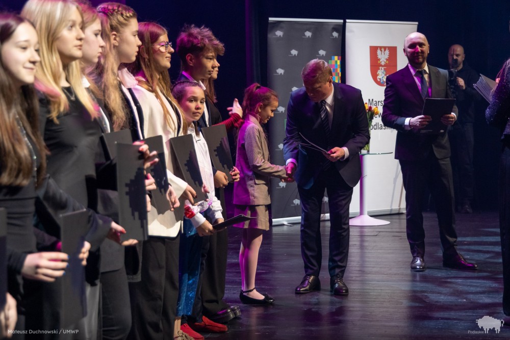 Wyróżnienia stypendystom wręczyli marszałek Łukasz Prokorym oraz wicemarszałek Marek Malinowski podczas środowej, 26.03, gali w Operze i Filharmonii Podlaskiej.