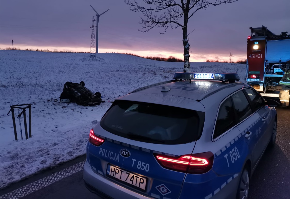 Do drugiego zdarzenia funkcjonariusze zostali skierowani o godzinie 6:45. Na drodze krajowej numer 65 w miejscowości Kozaki auto wypadło z drogi.