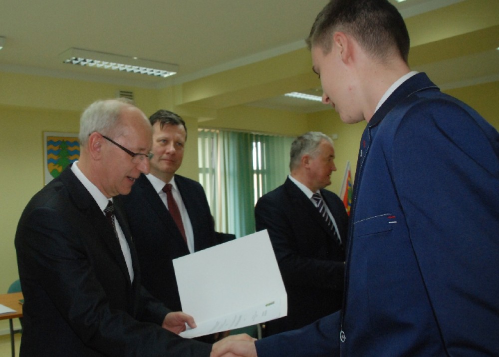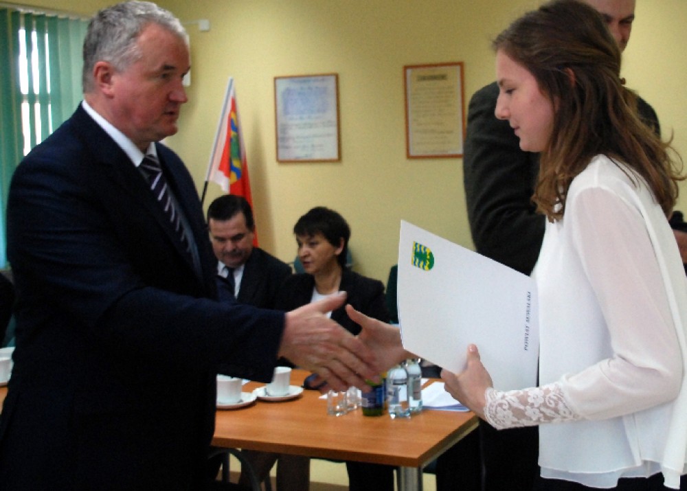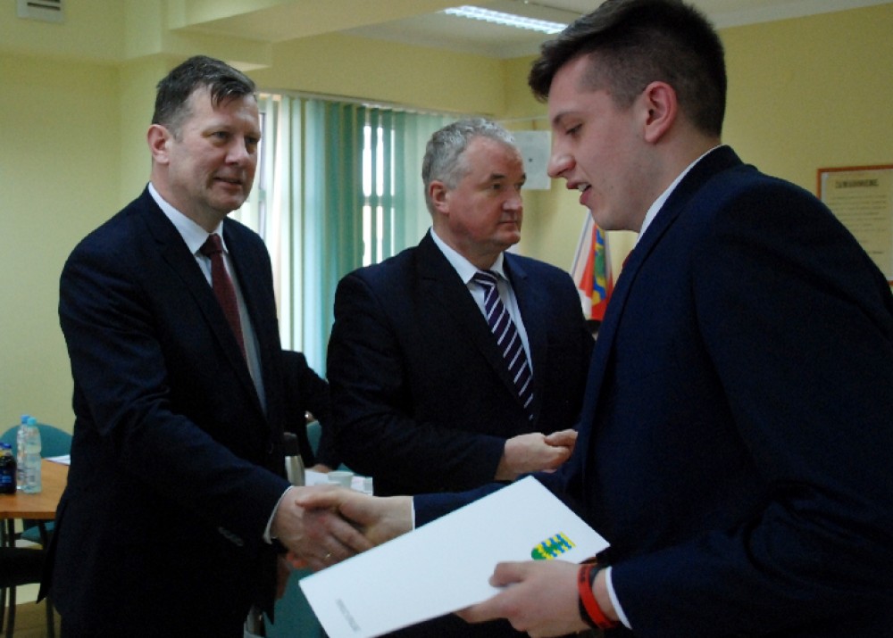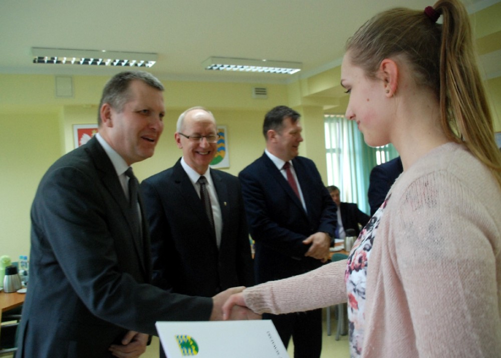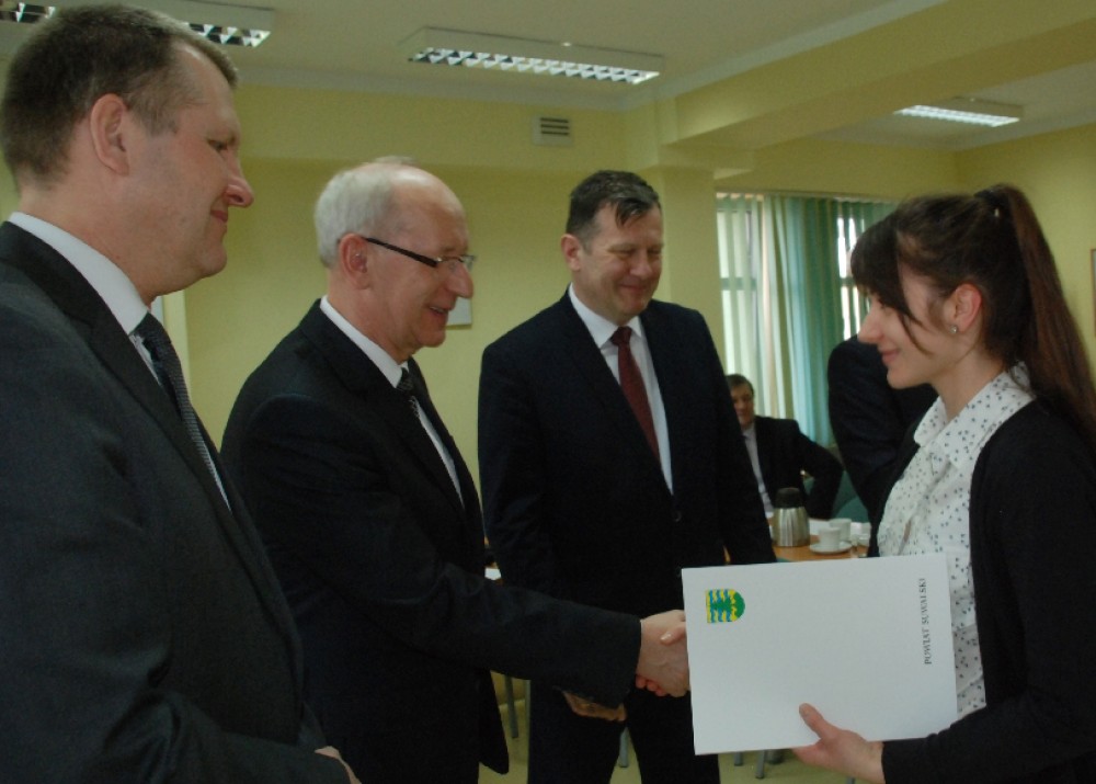 Starosta Powiatu Suwalskiego Szczepan Ołdakowski, członkowie Zarządu Powiatu i przewodniczący Rady Powiatu Grzegorz Mackiewicz wręczyli 37. uczniom szkół ponadgimnazajlnych stypendia przyznane za osiągnięcia sportowe i wyróżniające wyniki w nauce.