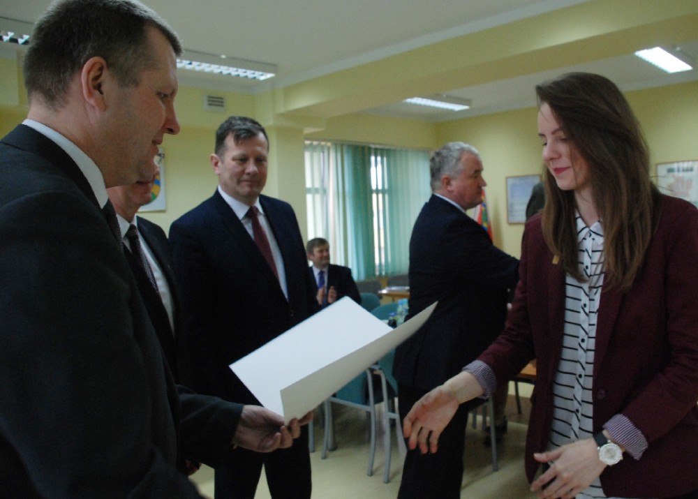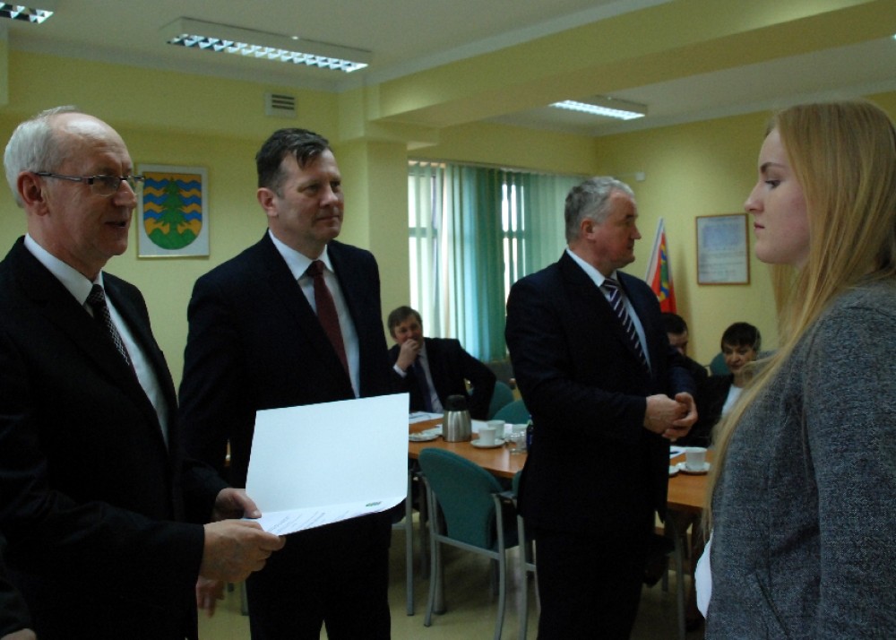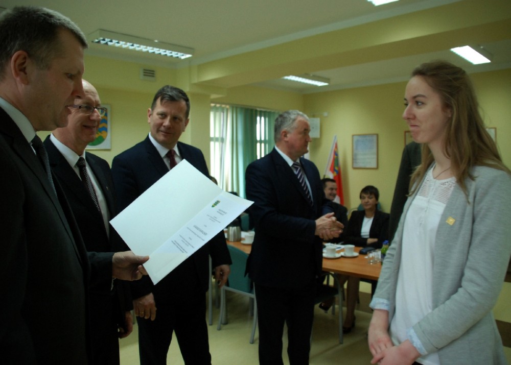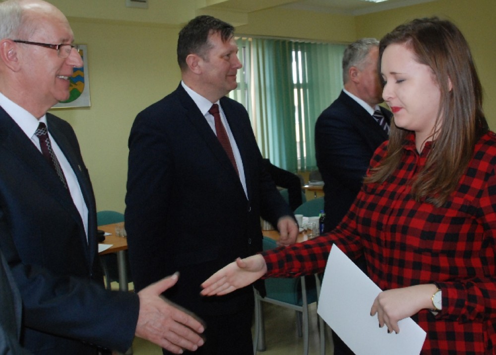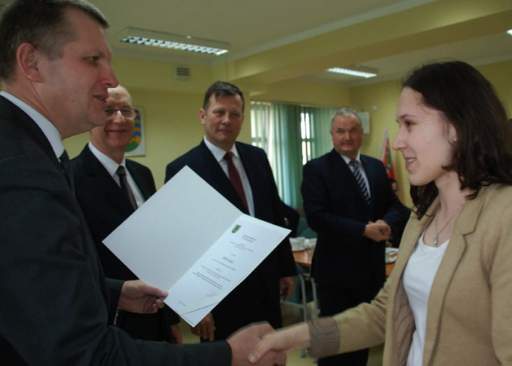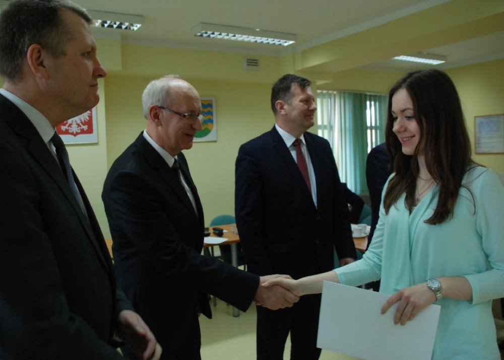 Starosta Powiatu Suwalskiego Szczepan Ołdakowski, członkowie Zarządu Powiatu i przewodniczący Rady Powiatu Grzegorz Mackiewicz wręczyli 37. uczniom szkół ponadgimnazajlnych stypendia przyznane za osiągnięcia sportowe i wyróżniające wyniki w nauce.