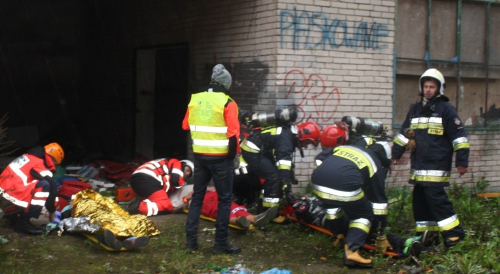 „ W części produkcyjnej jednej z hal, dochodzi do wybuchu pyłu drzewnego instalacji wyciągowej. W wyniku eksplozji wybucha pożar oraz zawala się dach budynku. Ogień rozprzestrzenia się na sąsiednie pomieszczenia hali. Część osób poszkodowanych zostaje uwięziona pod elementami konstrukcyjnymi dachu. Osoby najmniej poszkodowane dzwonią do służb ratowniczych przekazując chaotycznie informacje o zaistniałym zdarzeniu. Służba dyżurna PSP przyjmuje zgłoszenia, próbuje ustalić skalę zdarzenia. Ustala, że doszło do olbrzymiej eksplozji pyłu drzewnego instalacji wyciągowej oraz pożaru, który w błyskawicznym tempie przybiera na sile. W zdarzeniu poszkodowanych zostaje kilkadziesiąt osób. Do działań rusza dziewięć zastępów straży pożarnych i cztery zespoły ratownictwa medycznego” - tak wyglądał w skrócie scenariusz ćwiczeń – informuje Tomasz Jagłowski, zastępca komendanta powiatowego PSP w Olecku.