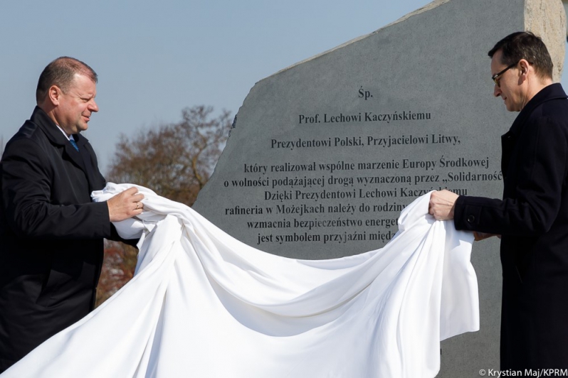 - Możejki to żywy pomnik prezydenta Lecha Kaczyńskiego, który łączy krwiobiegi gospodarcze Polski i Litwy, tworząc dobre perspektywy na przyszłość - powiedział w litewskich Możejkach premier Mateusz Morawiecki. Zadeklarował też, że Polska chce kontynuować dzieło zmarłego prezydenta.
