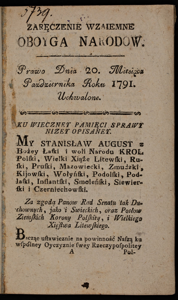 Otwarcie wystawy we wtorek 19 października obejmie kolejny ważny dla Litwy dokument - ustawę o wzajemnych gwarancjach (wzajemna obietnica). Została przyjęta przez Sejm Rzeczypospolitej Obojga Narodów 20 października 1791 roku.