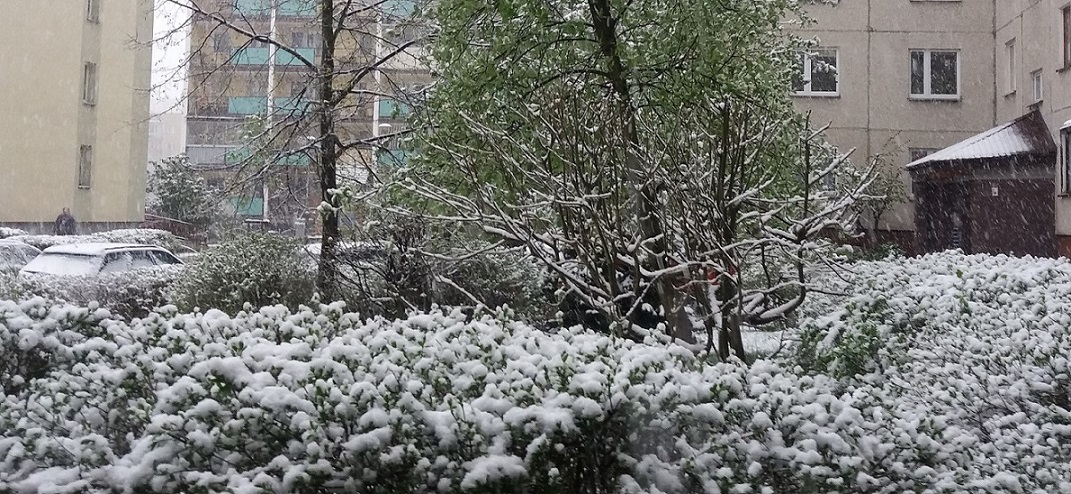 Åšnieg powraca do nas po niemal póÅ‚rocznej przerwie. Jego dosyć intensywne opady na Suwalszczyźnie wystÄ…piÅ‚y 9 i 10 maja (na zdjÄ™ciu).