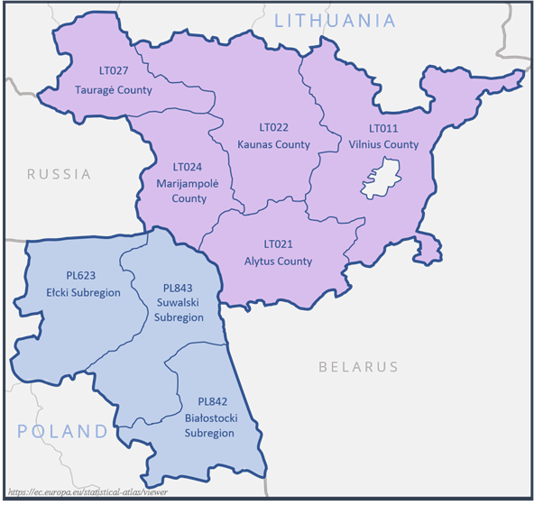 Obszar wsparcia Programu Interreg Litwa-Polska obejmuje 5 regionów (okrÄ™gów) poÅ‚udniowowschodniej Litwy i 3 podregiony póÅ‚nocno-wschodniej Polski. Razem to teren o wielkoÅ›ci 51,5 tys. km2 (31,7 tys. km2 po stronie litewskiej oraz 19,8 tys. km2 po stronie polskiej). DÅ‚ugość granicy miÄ™dzy LitwÄ… a PolskÄ… mierzy 104,3 km. Liczba ludnoÅ›ci obszaru objÄ™tego programem w 2019 roku wynosiÅ‚a 2,25 mln - 1,18 mln obywateli Litwy i 1,07 mln obywateli RP.