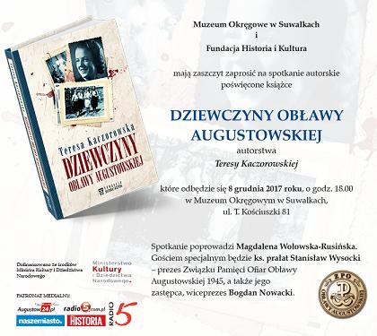 W piątek, 1 grudnia w Warszawie odbyła się promocja książki ”Dziewczyny obławy augustowskiej” autorstwa Teresy Kaczorowskiej. Podczas promocji na Targach Książki Historycznej w Zamku Królewskim obecny był burmistrz Augustowa Wojciech Walulik oraz ks. Stanisław Wysocki, który w obławie stracił ojca i dwie siostry.