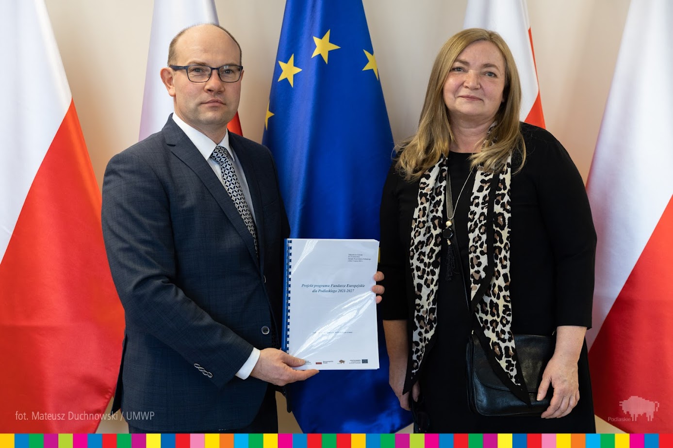 Założenia nowego programu regionalnego Fundusze Europejskie dla Podlaskiego 2021-2027 (FEdP) i możliwości pomocy uchodźcom z Ukrainy były tematem spotkania Elżbiety Gajeskiej z Dyrekcji Generalnej Polityki Regionalnej i Miejskiej Komisji Europejskiej (KE) i marszałka Artura Kosickiego w środę, 23 marca.
