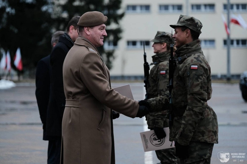 (...) dołączacie do naszej wojskowej rodziny w bardzo intensywnym momencie. Podlascy terytorialsi od miesięcy wykonują zadania związane z operacją przeciwcovidową oraz kryzysem migracyjnym na polsko-białoruskiej granicy. Podejmując decyzję o służbę właśnie w takim momencie dajcie największy wyraz miłości do Ojczyzny. Tym bardziej jestem dumny z Waszego wyboru - powiedział do zgromadzonych płk Sławomir Kocanowski, dowódca 1 Podlaskiej Brygady Obrony Terytorialnej.