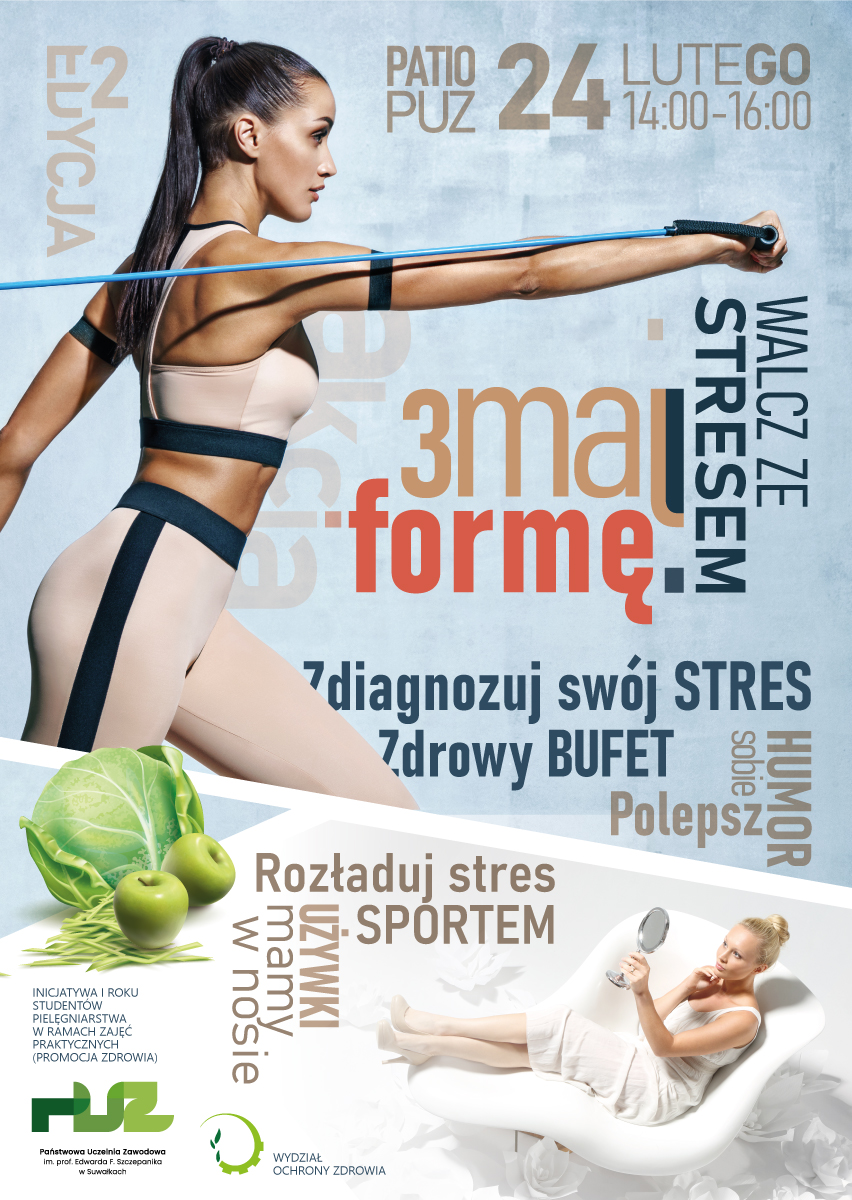 O tym, ze „tłusty czwartek” można spędzić nieco inaczej po raz kolejny będą przekonywać studenci I roku pielęgniarstwa PUZ w Suwałkach. Już 24 lutego kolejna edycja akcji: 3Maj Formę – w tym roku również pod hasłem „Walcz ze stresem”!