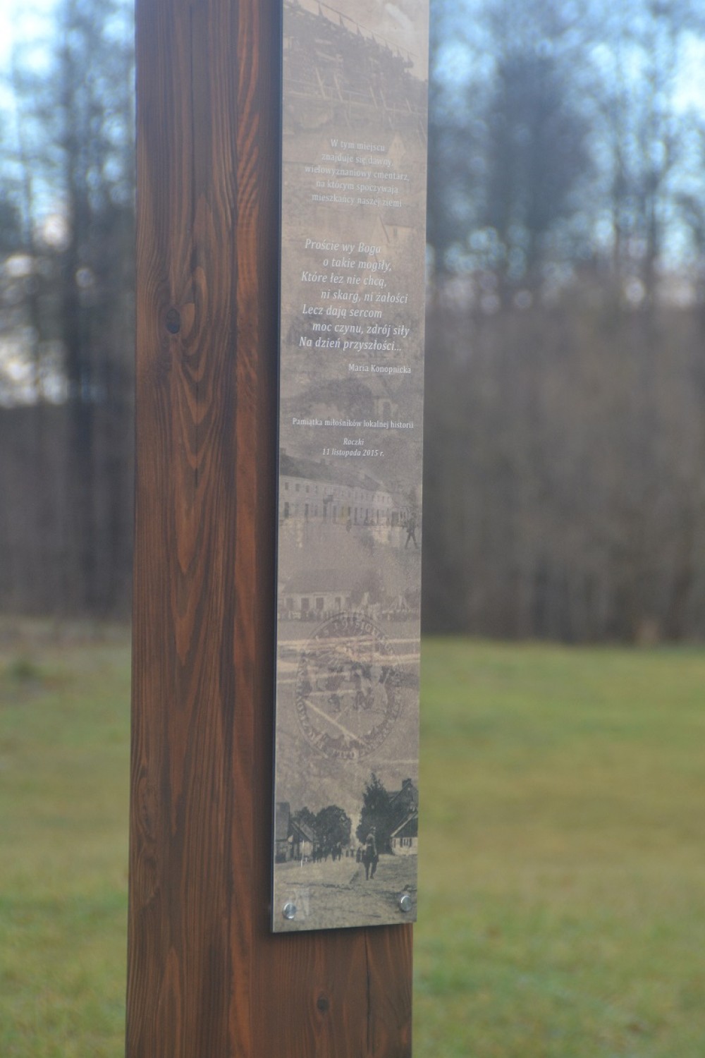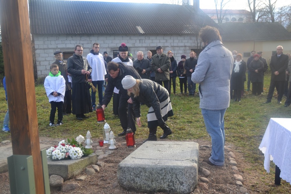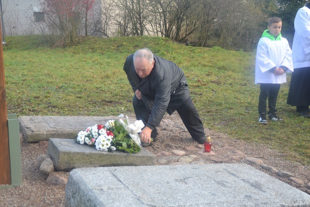 Wraz z grupÄ… innych miÅ‚oÅ›ników historii i radnym Tomaszem GaździÅ„skim postanowiÅ‚ o tym miejscu przypomnieć. PomogÅ‚y wÅ‚adze gminy, GOK i prywatne osoby. Kilka dni temu krzyż zostaÅ‚ zamontowany, a w Å›rodÄ™ ks. Henryk Polkowski, proboszcz miejscowej parafii dokonaÅ‚ jego poÅ›wiÄ™cenia.