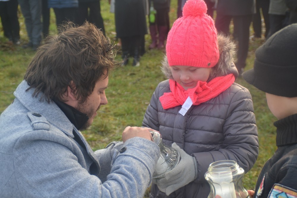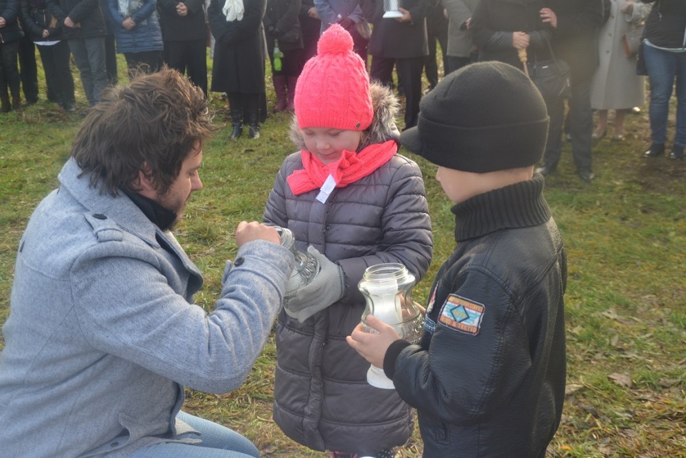 Symboliczne znicze przed nowym miejscem pamięci zapalili najstarsi i najmłodsi uczestnicy uroczystości.