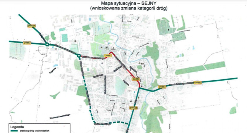 Miasto przekazałoby Podlaskiemu Zarządowi Dróg Wojewódzkich zmodernizowany niedawno odcinek drogi nr 102123B ul. Wojska Polskiego na biegnący od skrzyżowania z ul. Konarskiego i Łąkową do skrzyżowania z ul. 1 Maja. W zamian dotychczasowa droga wojewódzka nr 653, przebiegająca przez centrum miasta (od ronda przy ul. Konarskiego, Łąkowej i Wojska Polskiego – do minironda przy ul. Piłsudskiego, Parkowej i Powstańców Sejneńskich) stałaby się miejską.