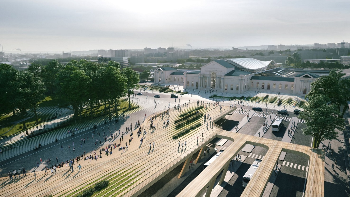 Znana na świecie pracownia architektoniczna zaprezentowała ideę „Green Connect”, która w ubiegłym roku zebrała najwięcej punktów w międzynarodowym konkursie zorganizowanym przez Grupę Kolei Litewskich (LTG) i Urząd Miasta Wilna. Zwycięski zespół ma duże doświadczenie w projektowaniu złożonych obiektów, firma stworzyła również projekt dworca kolejowego Rail Baltica w Tallinie.