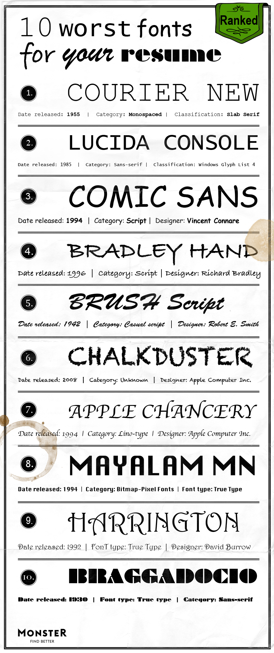 Jak zepsuć nawet najlepsze CV? Użyć przestarzałej, niewyraźnej lub dziecinnej czcionki. Oto antyranking przygotowany przez serwis z ofertami pracy MonsterPolska.pl.