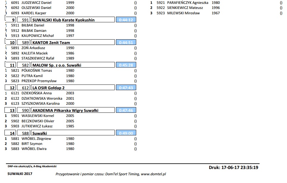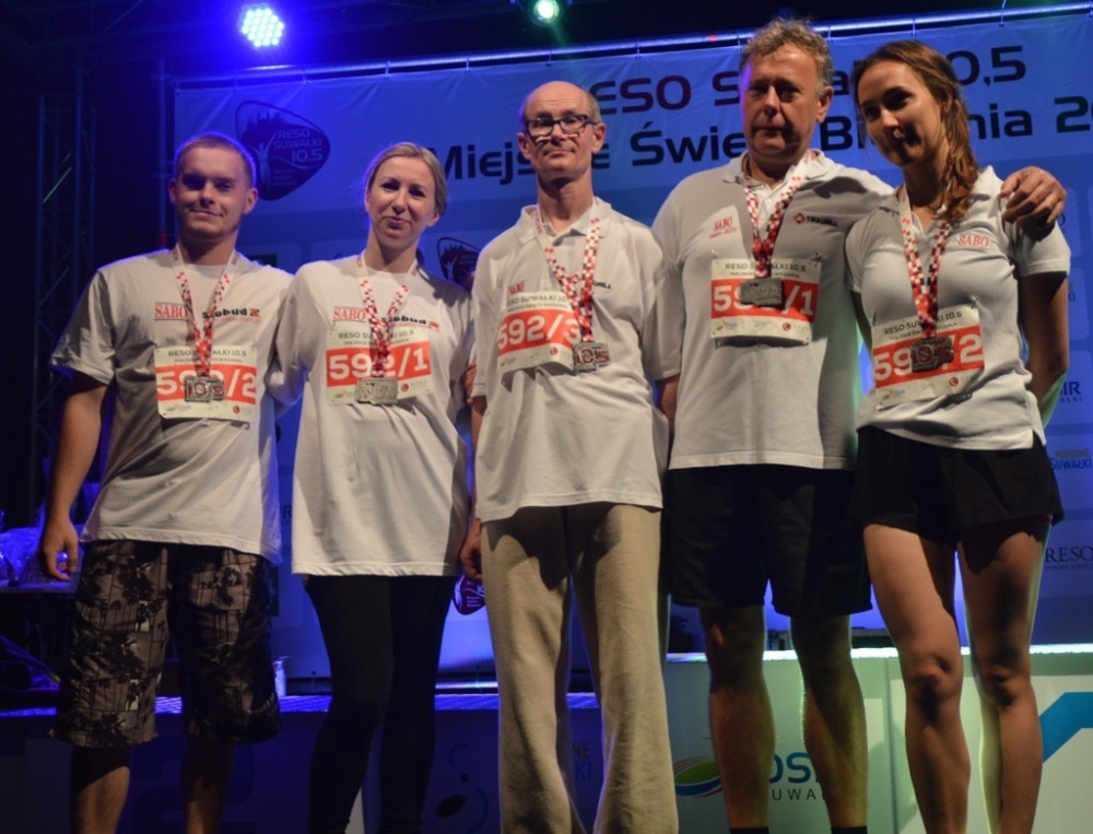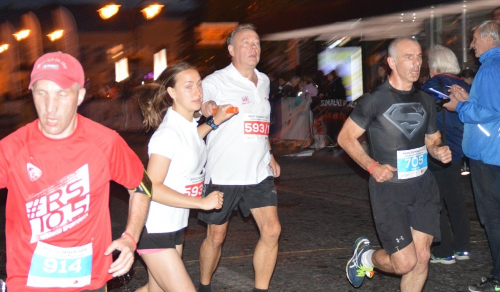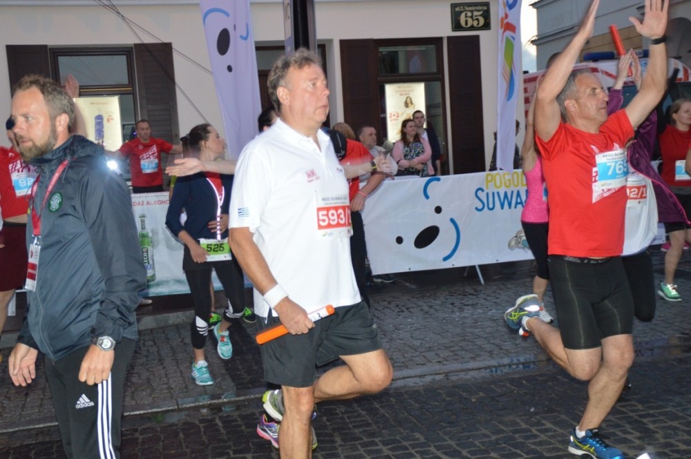 Widzowie imprezy zorganiowanej przez OSiR Suwałki, którzy mimo paskudnej, deszczowej i chłodnej aury przyszli na Plac Marii Konopnickiej, dopingowali głównie członków rodzin i znajomych, uczestników wyścigu trzyosobowych sztafet – Pogodne Suwałki Team. Na starcie stanęły 22 drużyny. Każdy zawodnik miał do pokonania jedną pętlę – 3,5 kilometra. Rywalizację wygrali zawodowcy z Podlasia Białystok.