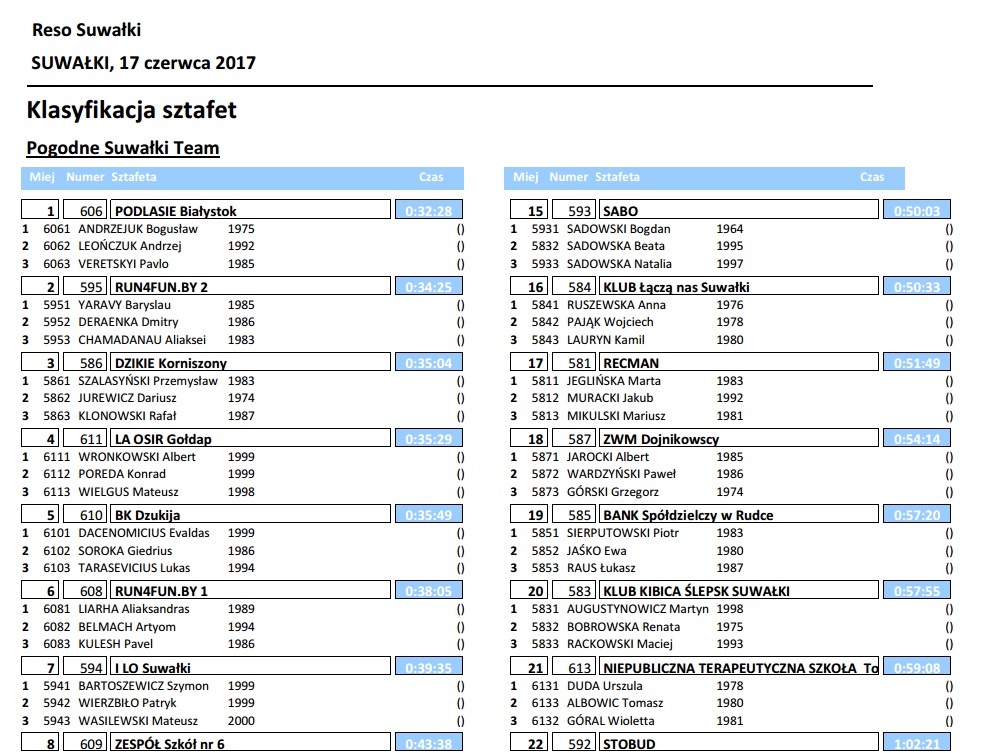 Wyniki wszystkich konkurencji Reso Suwałki 10,5 Suwalskiego Festiwalu Biegów