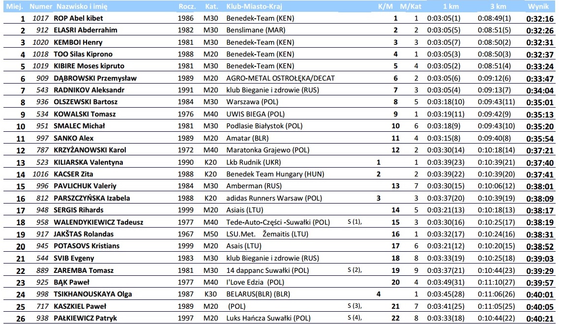W tym roku Michał Smalec z czasem 0:35:20 zajął 10. miejsce. Najlepszym z Europejczyków był szósty na mecie Przemysław Dąbrowski z Ostrołęki, a najszybszym suwalczaninem Tadeusz Walendykiewicz, który był 18. Wyprzedziła go m.in. Walentyna Kiliarska z Ukrainy. Najlepsza z kobiet zajęła 13. miejsce w generalnej klasyfikacji.