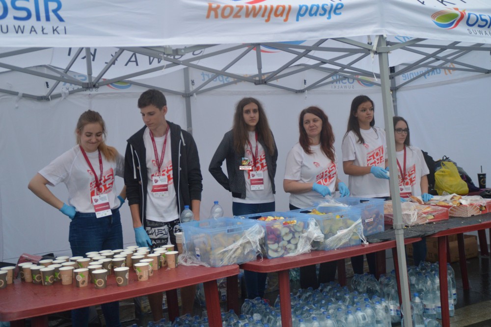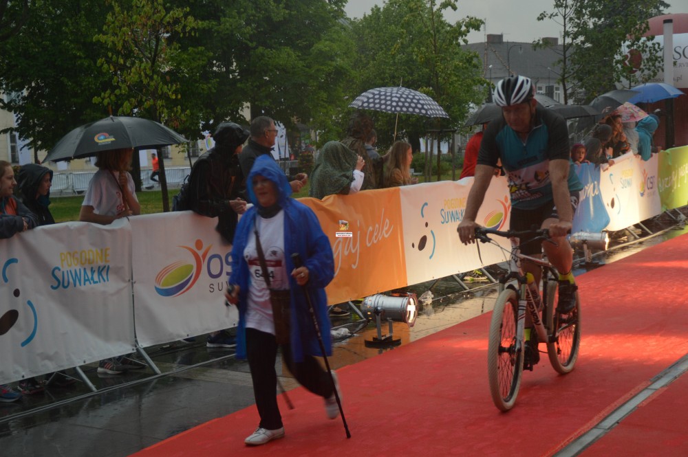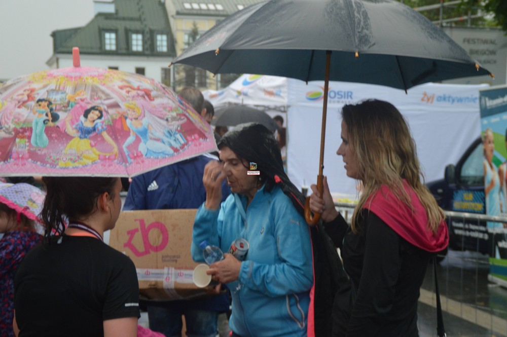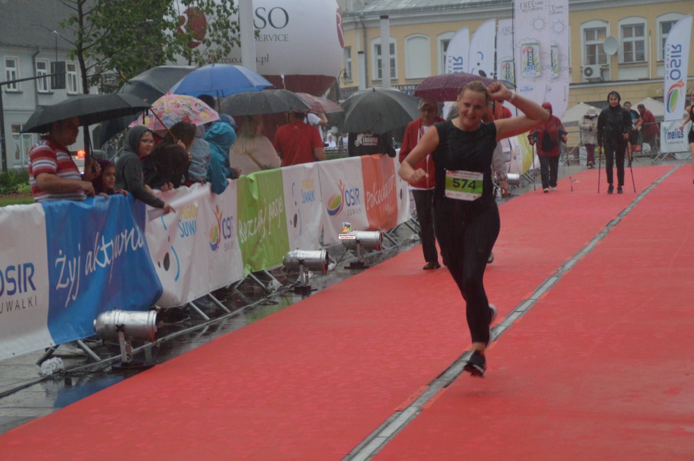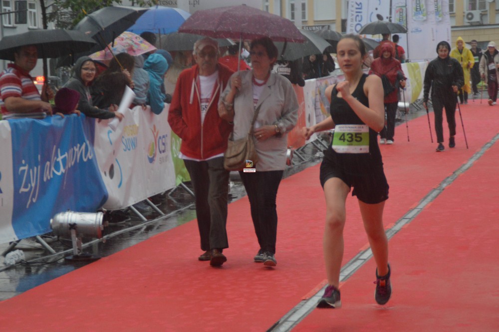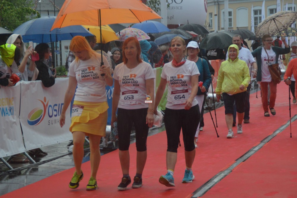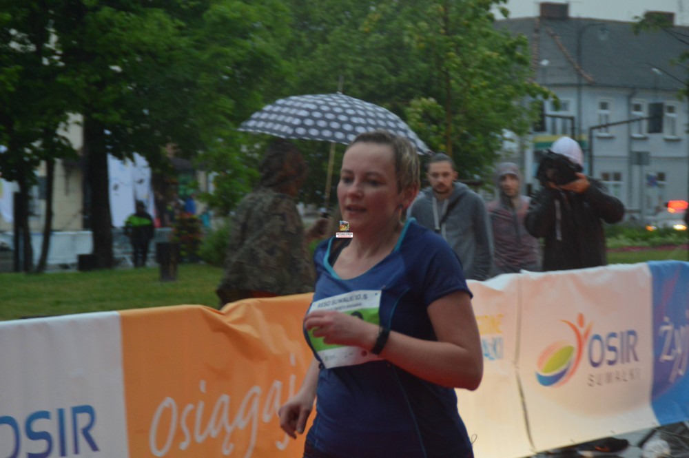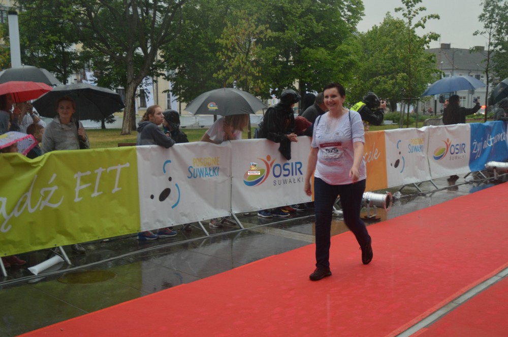 Pecha mieli uczestnicy wyznaczonego na godz. 20.00 biegu na 3,5 kilometra - Suwalskie Debiuty. Blisko stu biegaczy i drugie tyle towarzyszących im w Suwalskim Marszu im z kijkami nordic walking emerytów zmoczył deszcz.