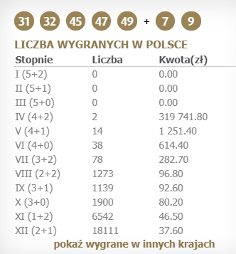 Tym razem w Polsce padÅ‚o wiele wygranych niższych stopni. Przypomnijmy, że rekordowa polska wygrana padÅ‚a 10 maja 2019 roku i wyniosÅ‚a 193 396 500,00 zÅ‚. Czy któryÅ› z polskich graczy zbliży siÄ™ do majowego rekordu w kolejnym losowaniu Eurojackpot? O tym dowiemy siÄ™ już 26 lipca.