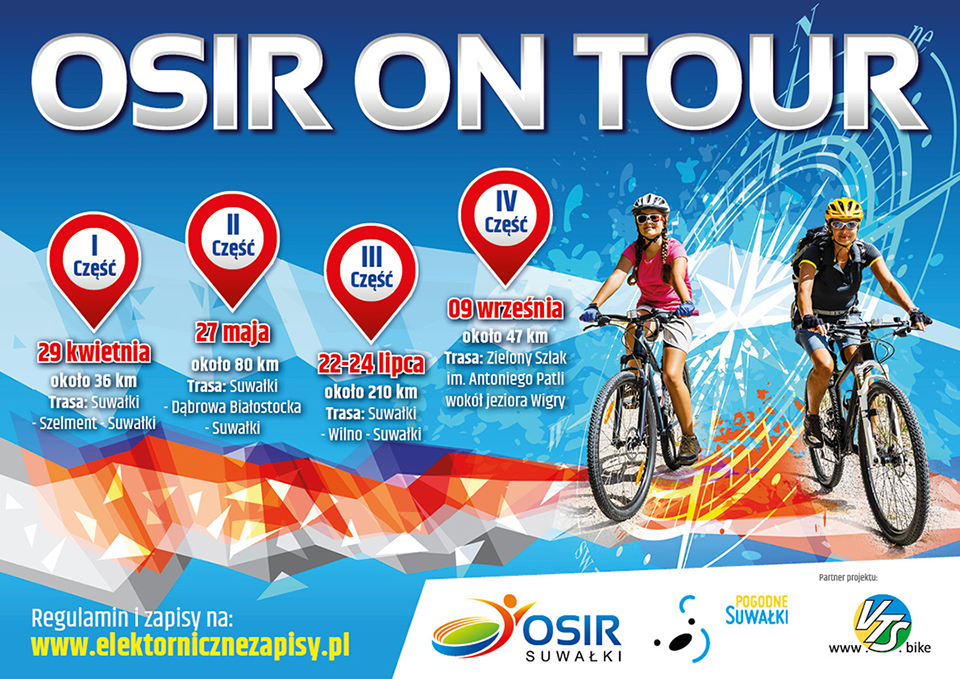 W dniach 22 – 24 lipca odbędzie się trzecia tegoroczna wycieczka z cyklu „OSiR On Tour”. Tym razem celem trzydniowej wyprawy rowerzystów będzie Wilno. Trasa zostanie podzielona na trzy odcinki, z dwoma noclegami, pod namiotami, na Litwie (pierwszy nad przepięknym jeziorem Metele, drugi w miejscowości Biała Waka).