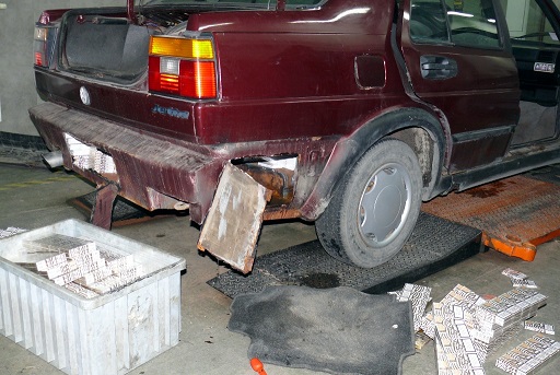 Podczas rewizji samochodu okazaÅ‚o siÄ™, że jest on caÅ‚y naszpikowany tytoniowÄ… kontrabandÄ…. Nielegalny towar o wartoÅ›ci ponad 70 tys. zÅ‚otych ukryty byÅ‚ niemal w każdej wolnej przestrzeni karoserii i podwozia pojazdu – m.in. w podÅ‚odze, w skrytkach w bagażniku, nadkolach i pod zderzakami.