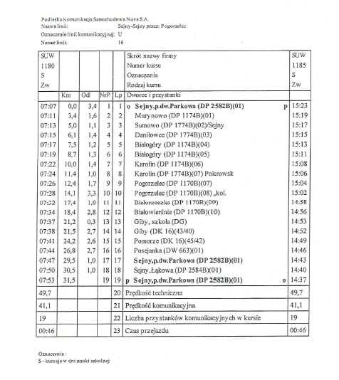 Obie trasy zostanÄ… uruchomione od dnia 10 stycznia 2022 r.( najbliższy poniedziaÅ‚ek). Linie bÄ™dÄ… kursowaÅ‚y jako linie przewozu o charakterze użytecznoÅ›ci publicznej „U”,182 dni w roku, 2 razy dziennie od poniedziaÅ‚ku do piÄ…tku z wyłączeniem sobót (D),kursować bÄ™dÄ… w dni nauki szkolnej (S), nie kursujÄ… w okresie ferii letnich i zimowych oraz szkolnych przerw Å›wiÄ…tecznych ( f ).